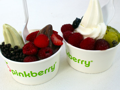 Green tea/chocolate and original tart fro-yo @ Pinkberry in LA.