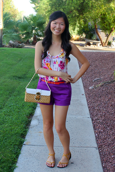 So now that I’ve revealed my sick obsession with colored shorts, it’s time to start parading them around!  I’ve had a blast experimenting with different combinations in my closet, and so for this look incorporated my two favorite elements: floral and bright.  Even though summer is quickly slipping away, you better believe I’ll be getting the most of my colored shorts.