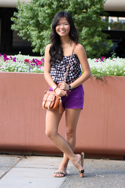 f21 top; j. crew shorts; h&m belt; michael kors watch; juicy couture bracelet; rebecca minkoff bag; classified sandals