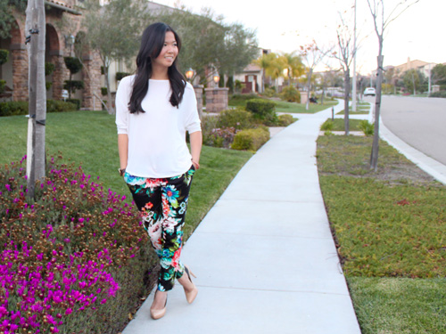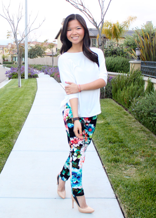 Spring break might be over, but actual spring is just about here. I’ll be ringing in the vernal equinox in a pair of floral pants from H&M (can you believe they were only $15 at full price?). Mondays are always rough — especially after a week long break — but it’s nothing a little floral print can’t fix.