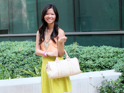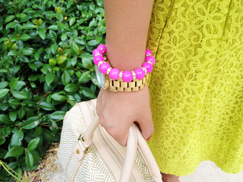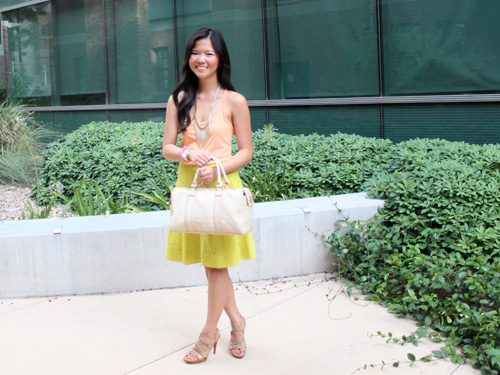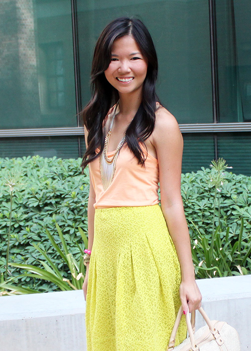 I had a little fun playing around with new color combinations in my closet this weekend. Staying true to my philosophy that brighter is better, I came up with this citrusy number. I’m so happy with how well a simple sherbet tank paired with my new chartreuse lace skirt. It just goes to show that a little experimentation can create unexpectedly fantastic results.