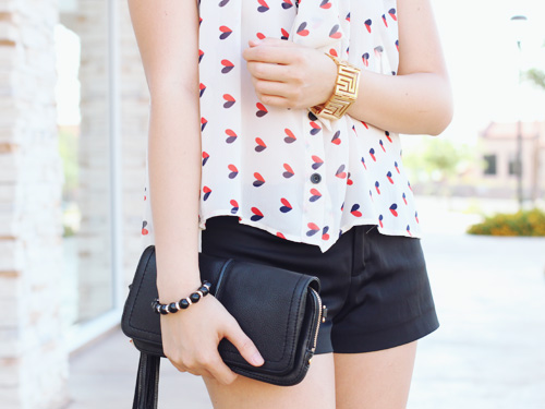 The countdown to my big move to NYC begins! With just one week left in Arizona, I’m starting to cram my life into one giant suitcase. In the mean time, I’m leaving a few fun items out to wear, including this adorable heart-print blouse from Tobi (sign up here to get 50% off your first order).