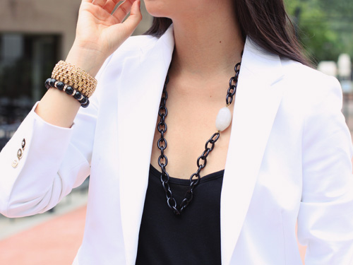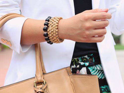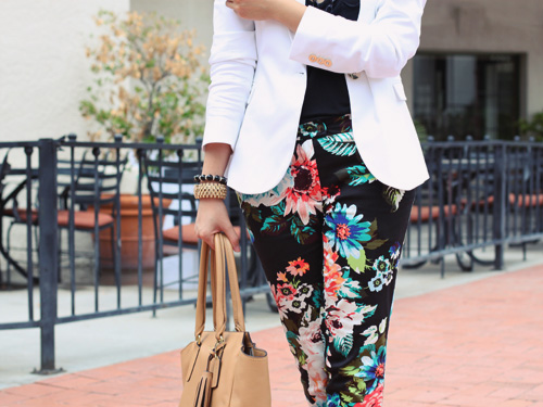 For me, this challenge was the perfect time to break out the white blazer that I bought during Zara’s online summer sale. I paired it with floral pants and black accessories for a sharp, yet flirty look. For more, check out how Jess, Tara, and Sara will be wearing white after Labor Day over at their blogs!