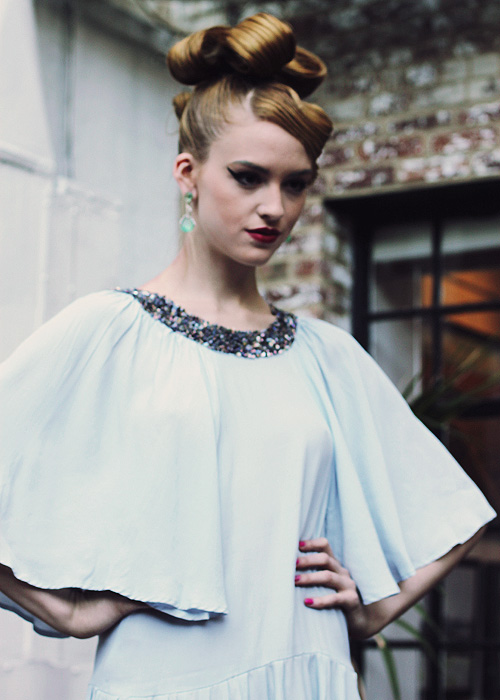 The collection was chock full of my favorite things: sparkles, prints, and bright colors — not to the mention the gorgeously styled hair on all of the models!  Bold jewelry offset delicate pastel colors perfectly, but I’m pretty sure the sequined bolero (see above) stole the show.  What do you guys think?