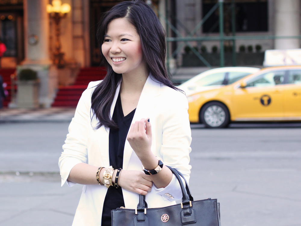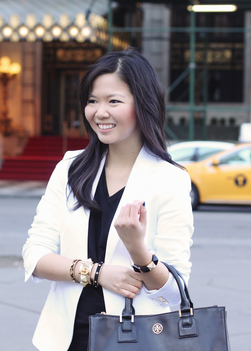 A blizzard is on its way this weekend, with NYC expecting 10 to 14 inches of snow with wind gusts up to 45 mph. Not sure what my very first blizzard will entail, but I’m just hoping not get to blown away. I wore this outfit a few weeks ago, when the only winter white around was my crisp blazer. Can’t wait to see what the whole city looks like covered in white!