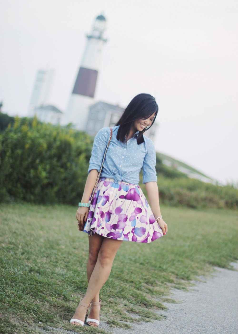 Skirt The Rules Blog; NYC fashion blogger; style blog; summer outfit photos; J.Crew chambray polka dot button up shirt; Forever 21 watercolor floral skirt; J.Crew turquoise stretch bracelet; Derng rosegold pave link bracelet; Rebecca Minkoff BF crossbody bag; Zara nude and white colorblock basic heelSkirt The Rules Blog; NYC fashion blogger; style blog; summer outfit photos; J.Crew chambray polka dot button up shirt; Forever 21 watercolor floral skirt; J.Crew turquoise stretch bracelet; Derng rosegold pave link bracelet; Rebecca Minkoff BF crossbody bag; Zara nude and white colorblock basic heelSkirt The Rules Blog; NYC fashion blogger; style blog; summer outfit photos; J.Crew chambray polka dot button up shirt; Forever 21 watercolor floral skirt; J.Crew turquoise stretch bracelet; Derng rosegold pave link bracelet; Rebecca Minkoff BF crossbody bag; Zara nude and white colorblock basic heel