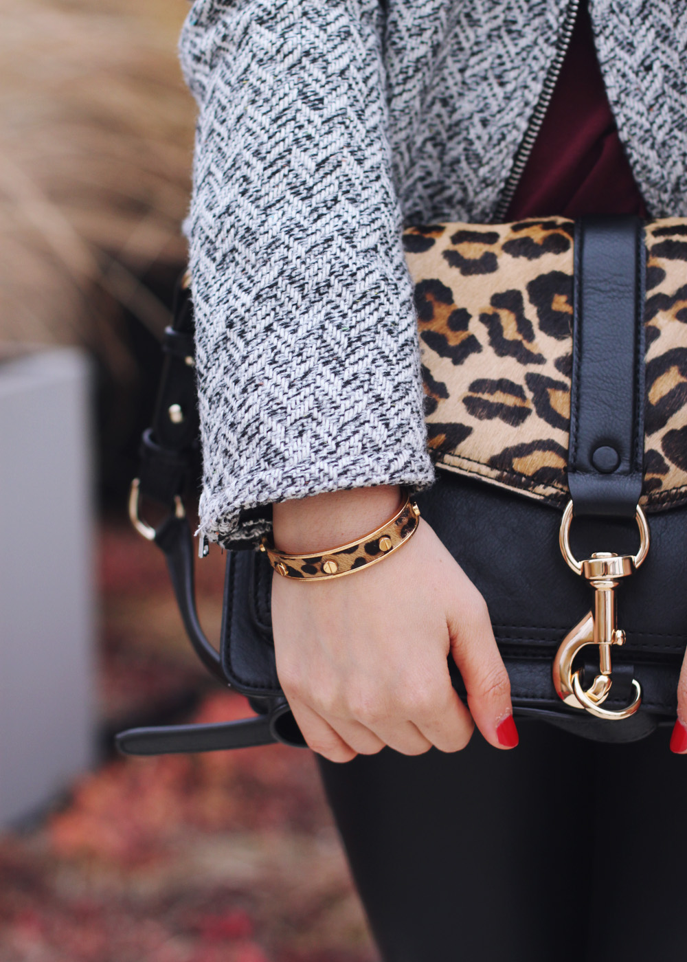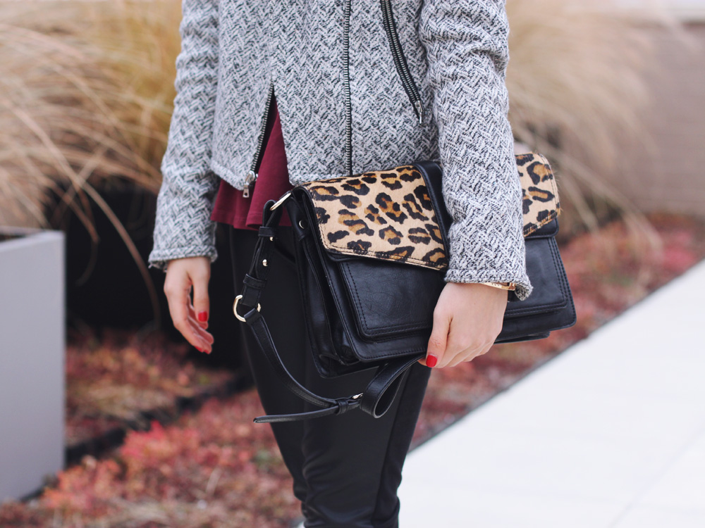 I’ve been making a conscious effort not to shop as much as I used to anymore. It’s been a great exercise in will power, but when I do find something that I love, I just can’t resist. Enter my new moto jacket, leopard bag and faux leather pants.