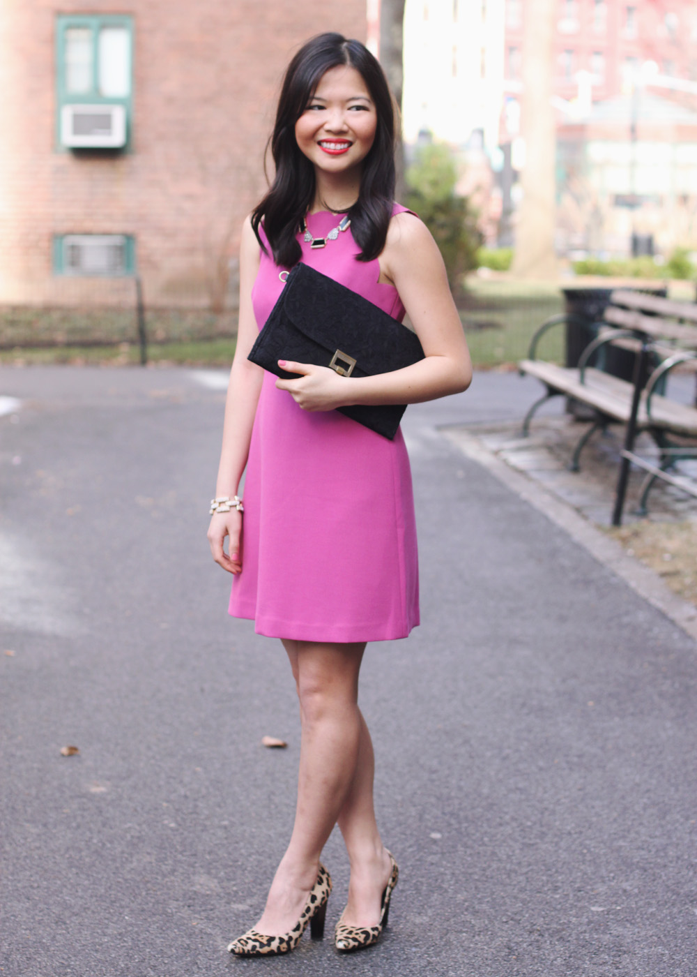 Another day, another dress — except this one has a few details that make the frock feel extra special. For starters, helloooo radiant orchid! The color of the year is vividly energizing and makes everything feel like spring (despite the fact that we’re scheduled for three snowstorms this week). But the icing on the cake has to be the scalloped neckline (to which my boyfriend asked if I took a pair of craft scissors to it). Life is in the details and this dress pretty much fits the bill.