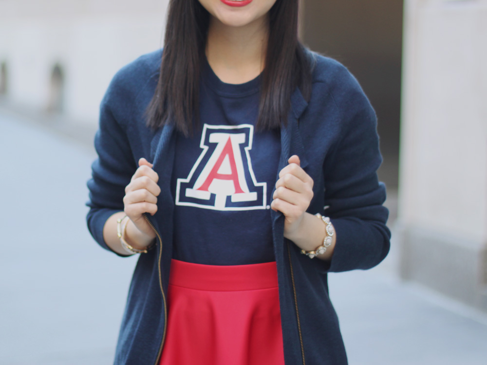 For those of you who know me, you know I’m not crazy about sports, but I’m WILD about my Cats and our basketball team.  That’s why I’m incredibly excited to be partnering with The Everygirl on a fun fashion feature for March Madness! Check out the full feature on how to dress up your favorite college t-shirt and watch me bleed red and blue all over your computer screen.  Enjoy and BEAR DOWN!