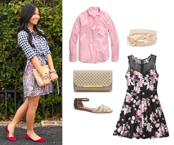 Let’s start with one of my favorite mixed print combos of all time: gingham and floral! I’d still rock the duo today, but would probably pare down on the color palette. Pinks and nudes make for a sophisticated color scheme, but the prints are just as fresh.
