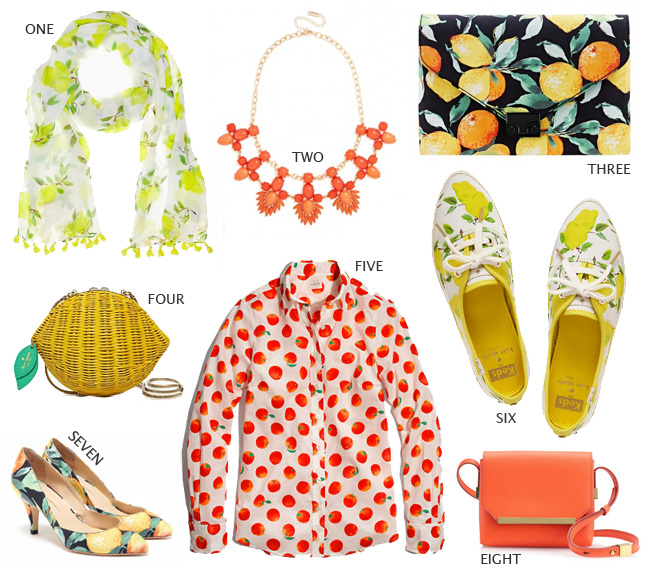 Citrus print isn’t anything new, but it’s back in full force this season. I especially love the tangerine print blouse from J.Crew Factory and the lemon printed Keds for Kate Spade. But if the quirky print (or an even quirkier straw clutch) isn’t you thing, you can still embrace one of my favorite spring trends with a punch of citrus color.