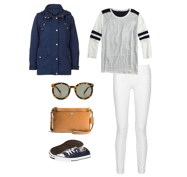 I also dig the laid back look and nothing’s more classic than a color combo of navy, white and cognac.  Throw on a pair of Chucks (I’ve owned mine for over a decade!) and it doesn’t get much easier than that.