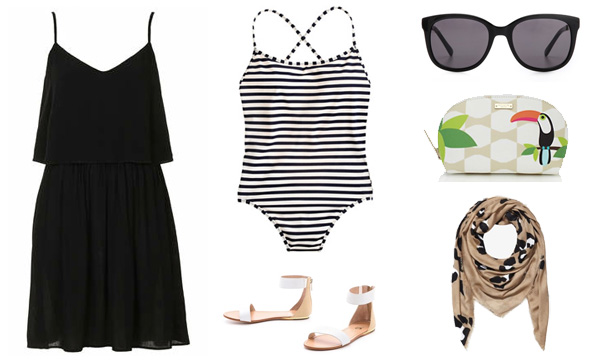 I like the 3rd outfit best, but once I try swimsuits on, I ALWAYS end up with the black one. I really like the handbags you selected for each of the outfits as well, they go really well together.