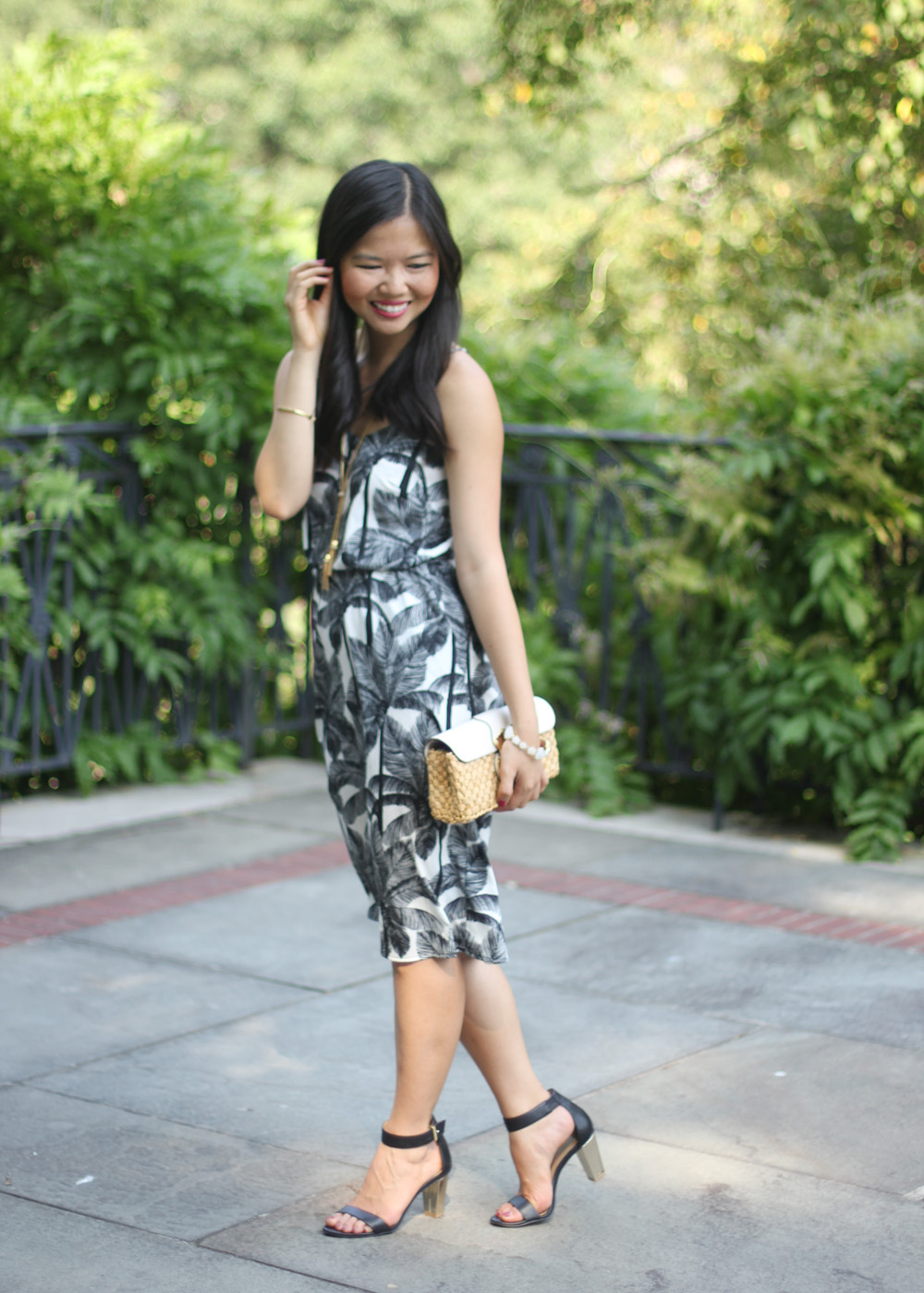 It’s only Wednesday, but I’m already in vacation mode in my head. Later today, the boyfriend, the pup and I all head down to North Carolina for a weekend on the lake for the Fourth of July! In the meantime, I’m adding a touch of tropics to my wardrobe with this midi-length palm print dress and counting down the hours!