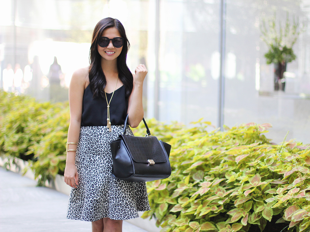 Although my style has changed over the years, there’s one thing that’s in it for the long haul: my love for leopard. I don’t care what form it comes in — top, shoes, bag, underwear (sorry, don’t have a link for that one!) — if it’s spotted, I need it. If it’s a leopard skirt — game over. This flared skirt is the latest addition to my animal printed arsenal. I love it with all-black accessories (top, bag, sunglasses), but I can’t wait to play around with other pairings. Leopard is a neutral after all!