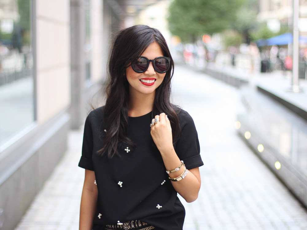 I wore this look to the French Connection holiday launch party in SoHo. Normally, I wouldn’t reach for pearls and tweed for a night on the town, but a little red lip and some slip-on sneakers took this outfit from uptown to downtown just like that. And as for the rest of my NYFW in heels? I had a sneaking suspicion that didn’t last very long (see what I did there?).