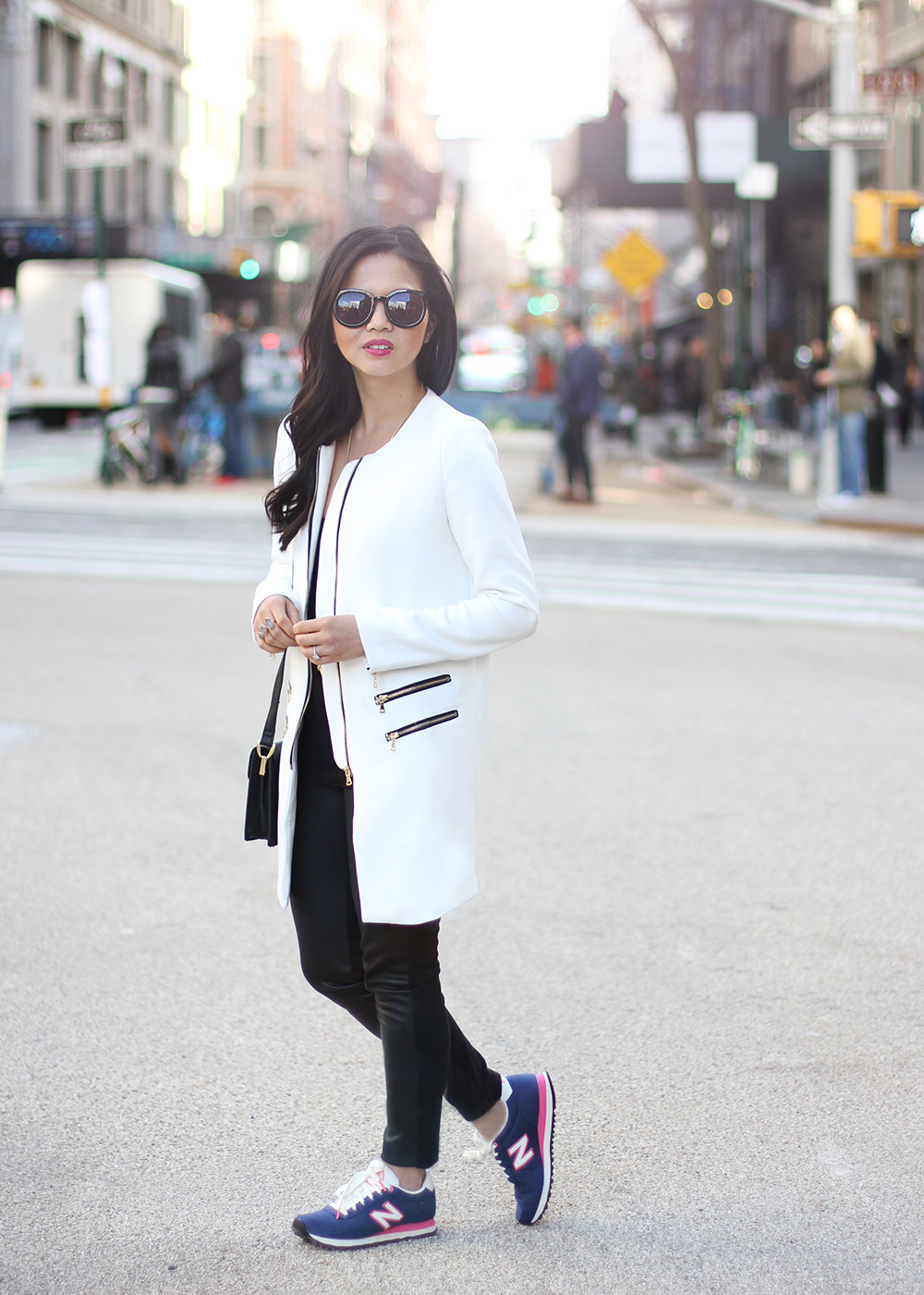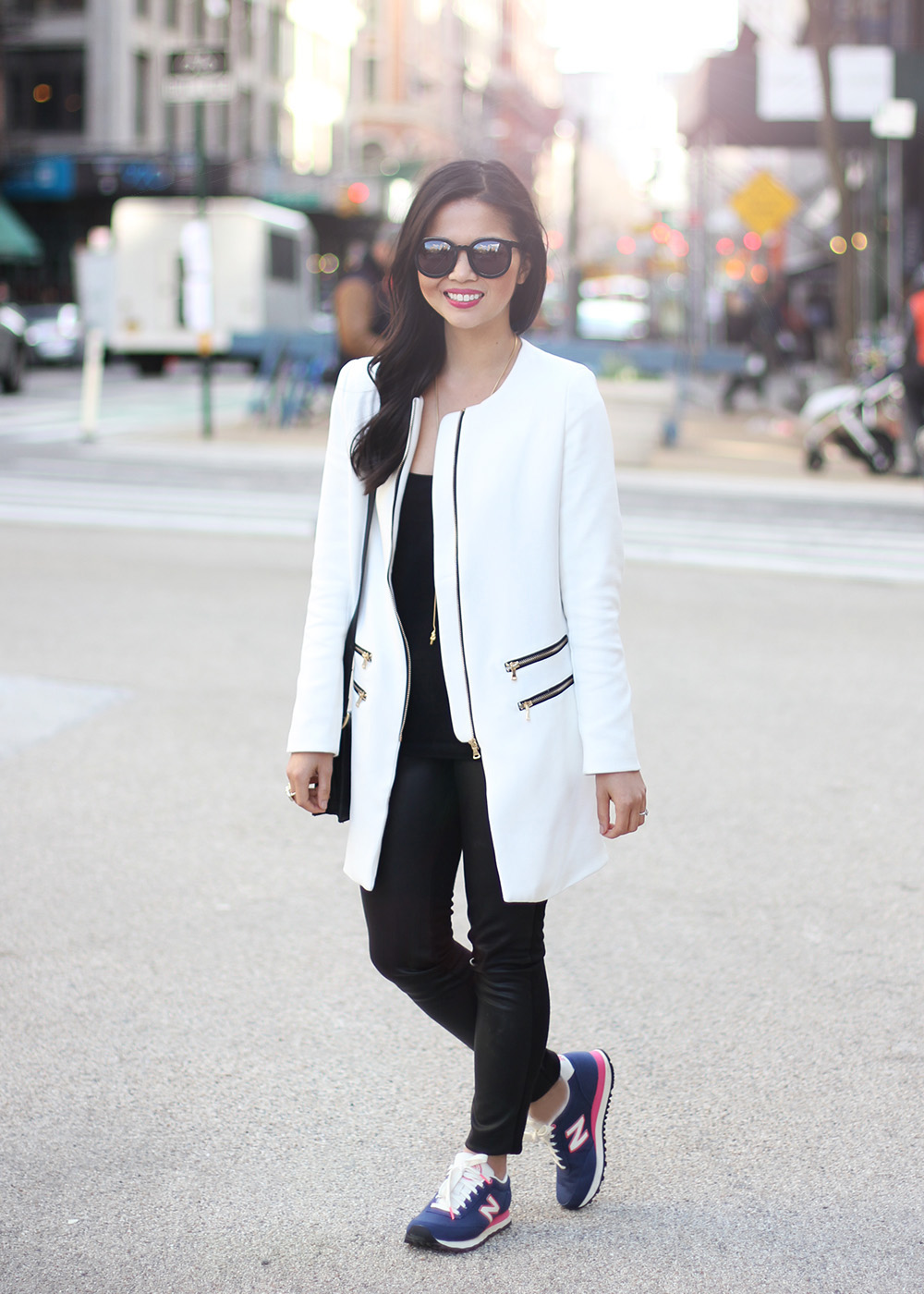 Enter the perfect sneakers from DSW. It’s a shoe style that I never thought I’d pair with something other than sweats and a tank top until recently. Times have changed, my friend! Athleisure is the idea of being sporty and comfortable, without sacrificing your style. The first time I explained the term to a friend, he laughed at me, but it’s a thing! Sneakers aren’t just confined to the gym or to the feet of middle-aged tourists. They’re being worn with dresses and skirts, or in my case, with a refined coat and leather leggings. Gone are the days where I have to stuff an extra pair of shoes in my already brimming tote bag and that’s a trend I can totally get behind.