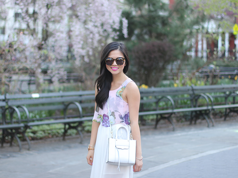 You know that feeling that you get when you drop your phone for the very first time? It’s heartbreaking. What was once perfect and pristine is now scarred… foreeeeeever! Yeah, I know it’s a little overdramatic, but the feelings are still there. Well, allow me to introduce you to my two recent Rebecca Minkoff sample sale finds: this white mesh skirt and this boxy crossbody bag.