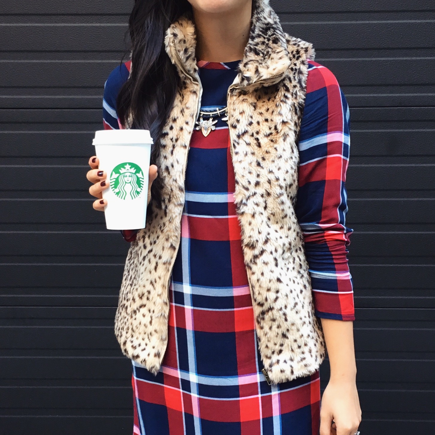 And on that note, it’s probably not a good time to start talking about faux fur. I got a little carried away when switching out my wardrobe a few weekends ago – but hey, if it’s chilly enough for a hot coffee and a vest, might as well make the most of it. P.S. This plaid dress is a must-have for fall.