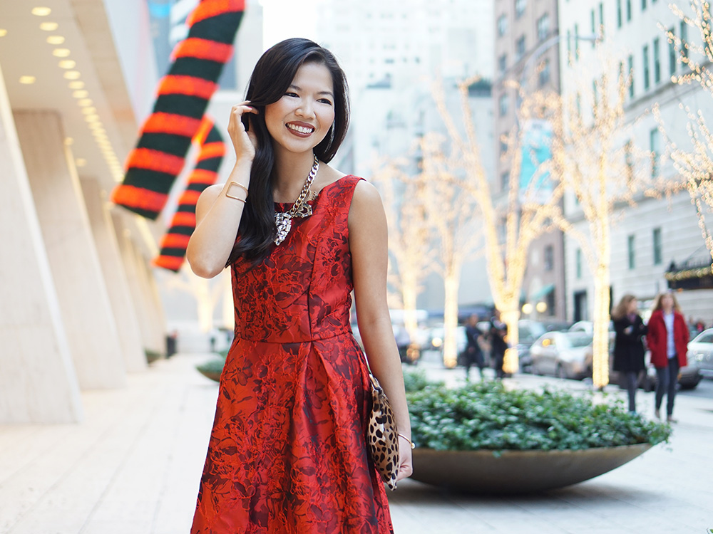 Stunning dress! I love the details in it. It takes the red holiday dress to a new level.
