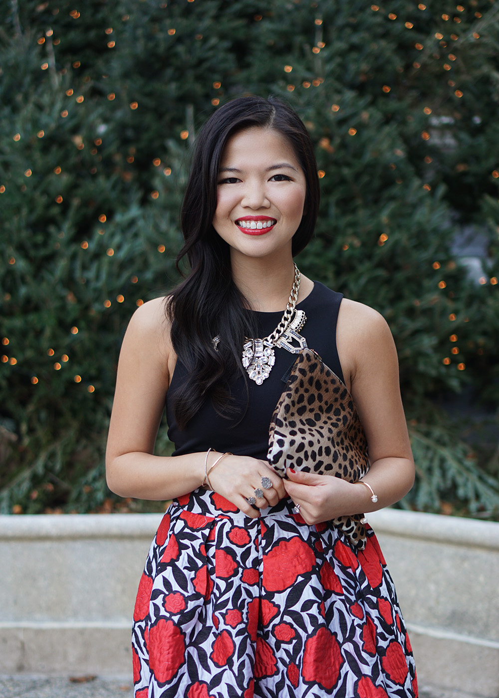 This is such a fun, festive print for the holiday season! You look absolutely adorable 🙂