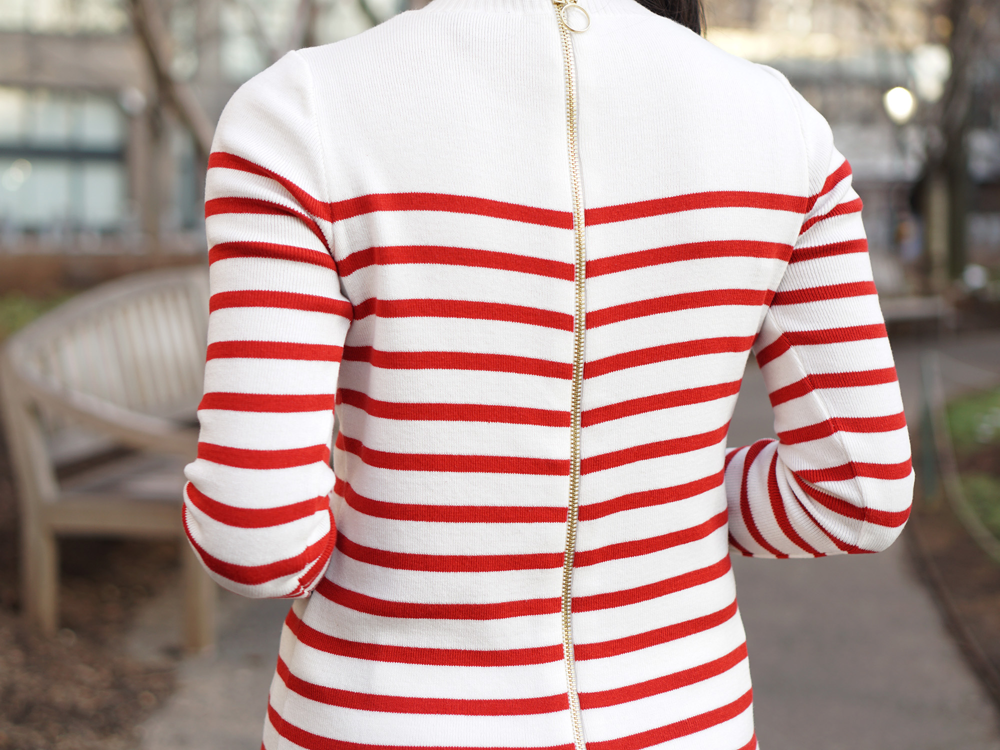 Stripe shirts are my weakness! I have an entire section of my closet devoted to all of my striped tops. I love the zipper detail on this one.