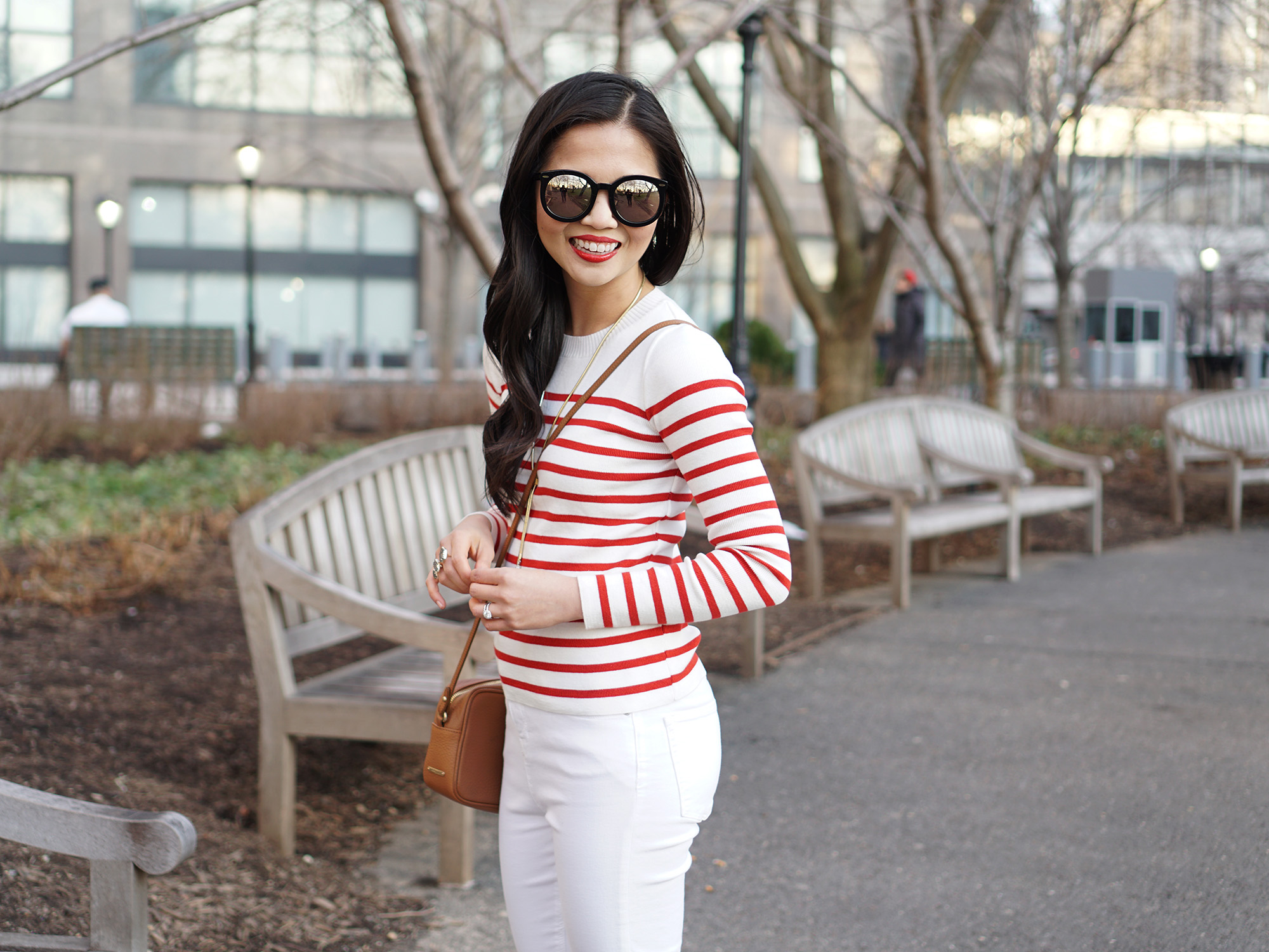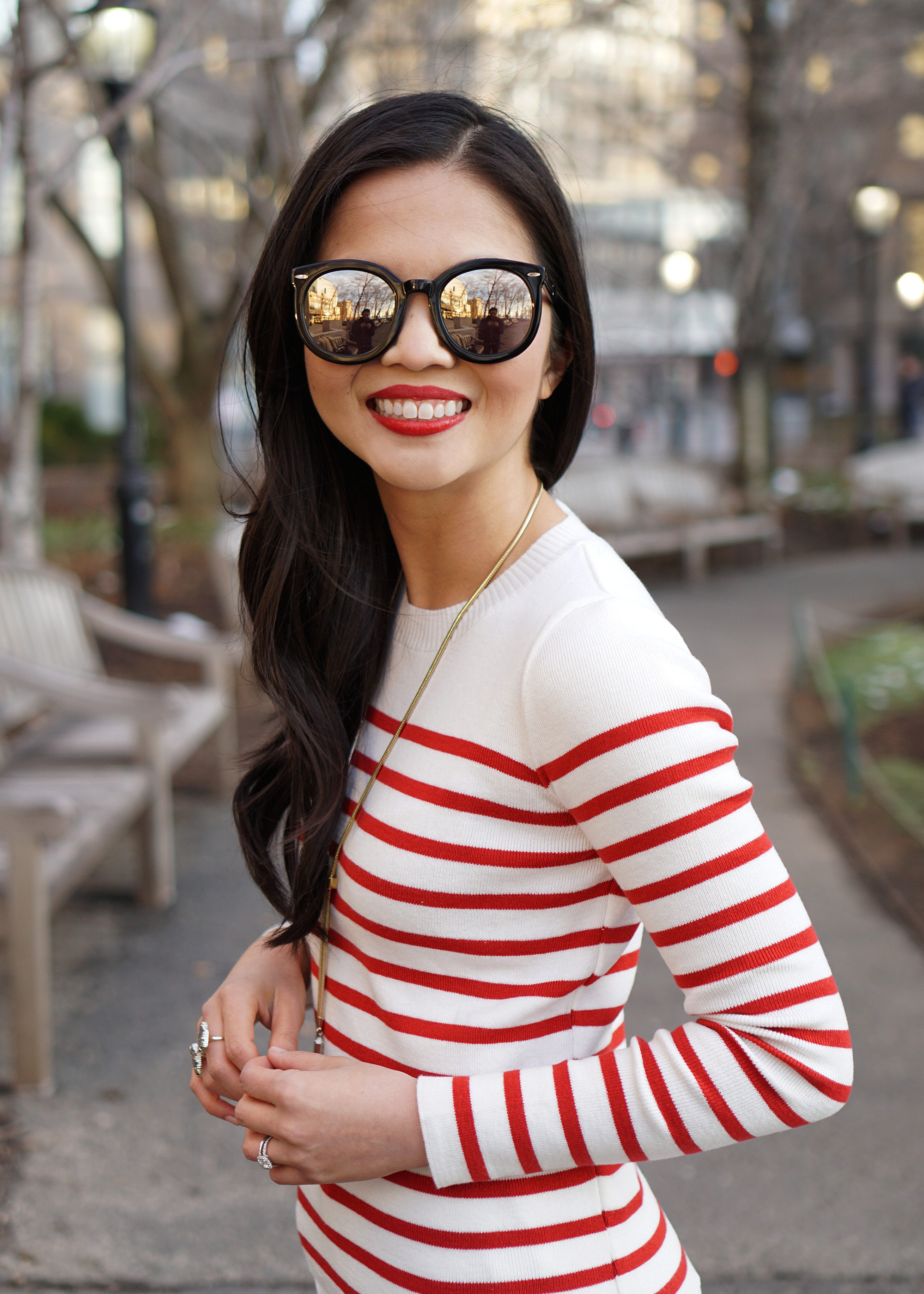 Such an amazing simple look, I love your striped sweater with the red lips also, so beautiful !