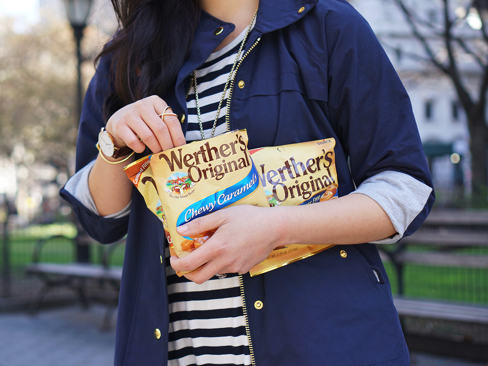 Last Tuesday, Werther’s Original invited me (and all of New York City!) to celebrate the sweet holiday by dropping the biggest candy dish you’ve ever seen down in the middle of Times Square. Their goal: share over a million little nuggets of sweetness on that day alone. Flashback to my childhood when my brother and I used to binge on bowls full of the little caramel hard candies. Now they have a few different varieties, including soft and chewy (my personal favorite), sugar free and caramel cream filled. You better believe that I grabbed them by the handful. Anyone else have fond memories of the caramel candy? Share your love with the hashtag #shareyourwerthers.