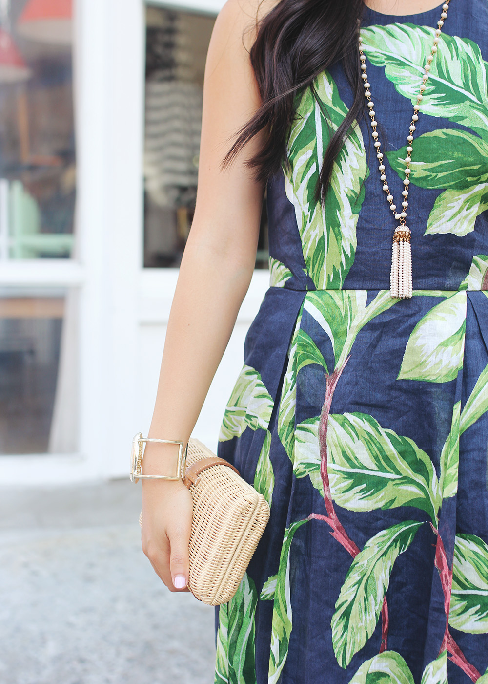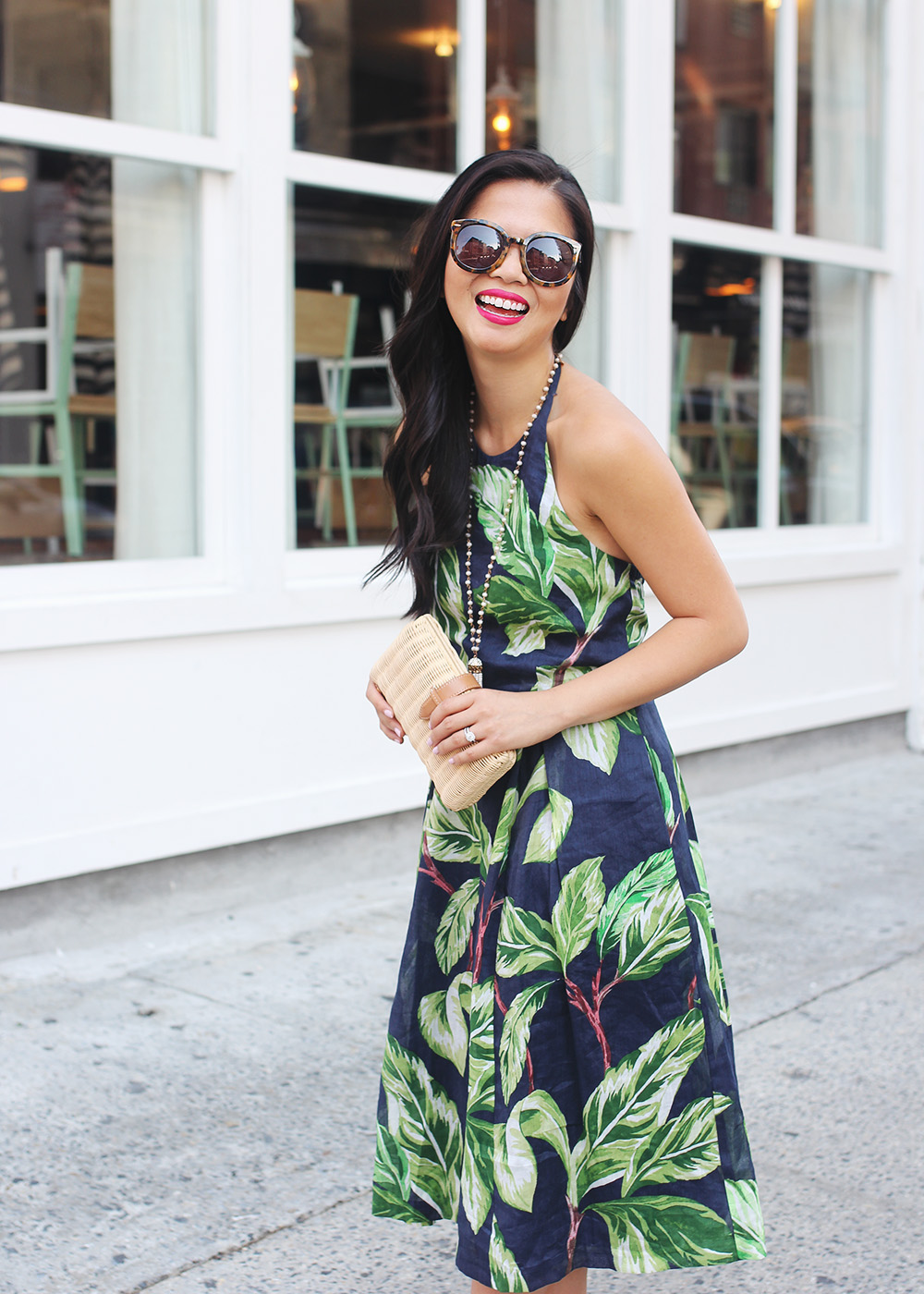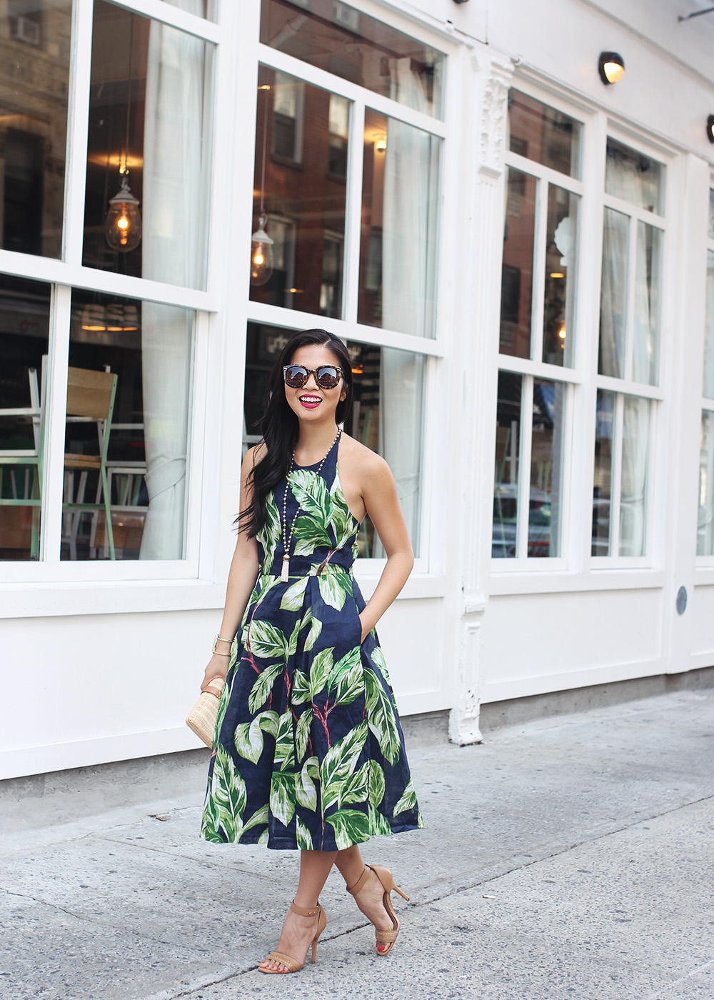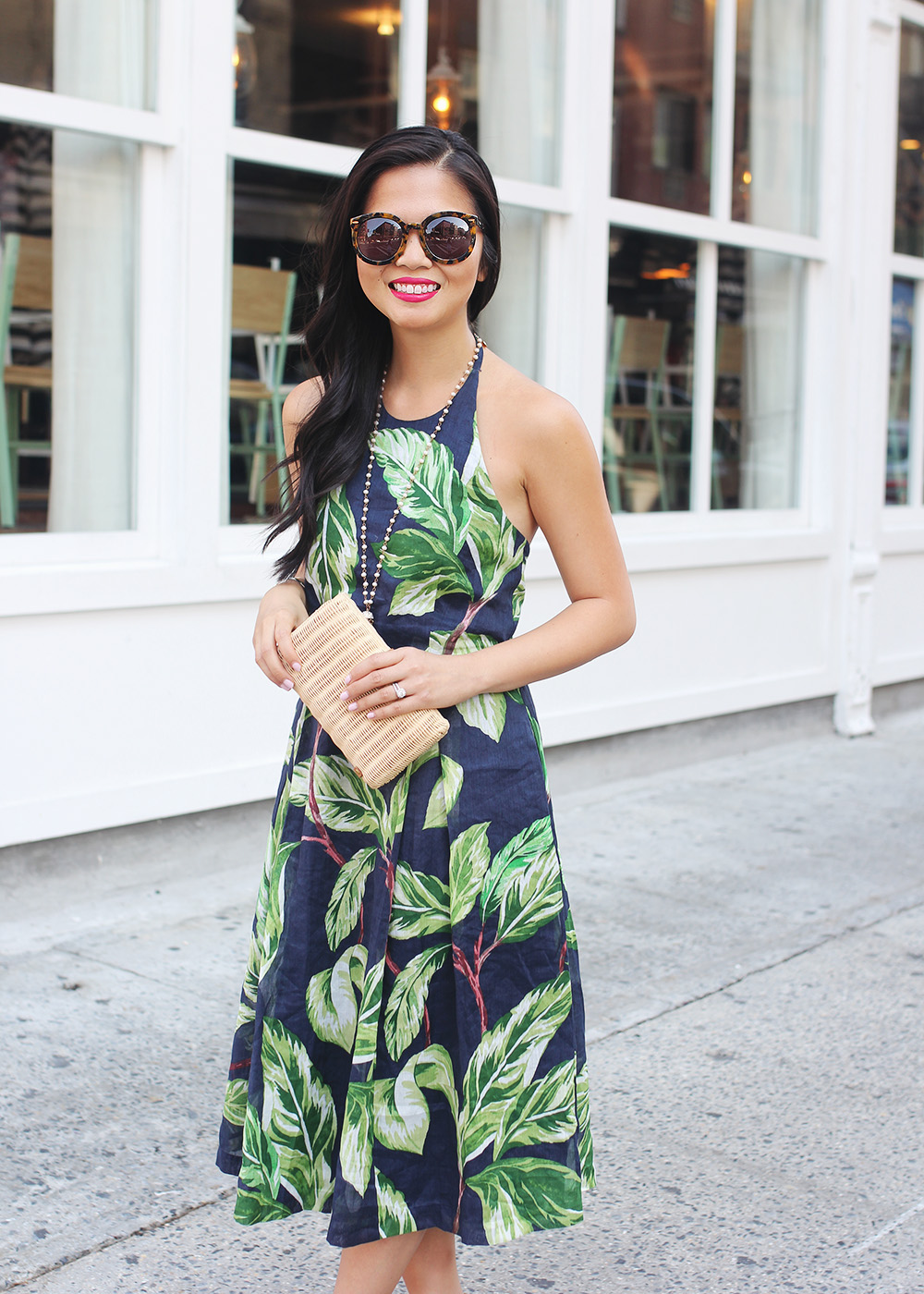 Ann Taylor ‘Amalfi’ halter dress (50% off!) / Karen Walker ‘Super Duper’ sunglasses / Spring Street beaded tassel necklace (sold out, similar here) / Kendra Scott ‘Lawson’ cuff (c/o) / Pour La Victoire ‘Yaya’ heels / NARS Audacious lipstick in ‘Greta’