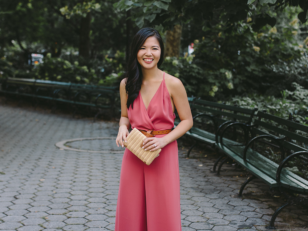 Surprise, surprise – the Nordstrom Anniversary Sale is still going on (through August 3!). I’m still getting around to posting everything I bought from the sale (you can see a complete list here), but I just had to share this gorgeous pink jumpsuit. Because I’m 5’2″, full length pants, jumpsuits or maxi dresses are usually a miss for me. I normally go for ankle/midi length hems because they end up looking full length on me – even with heels!