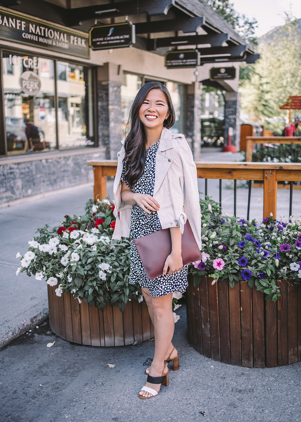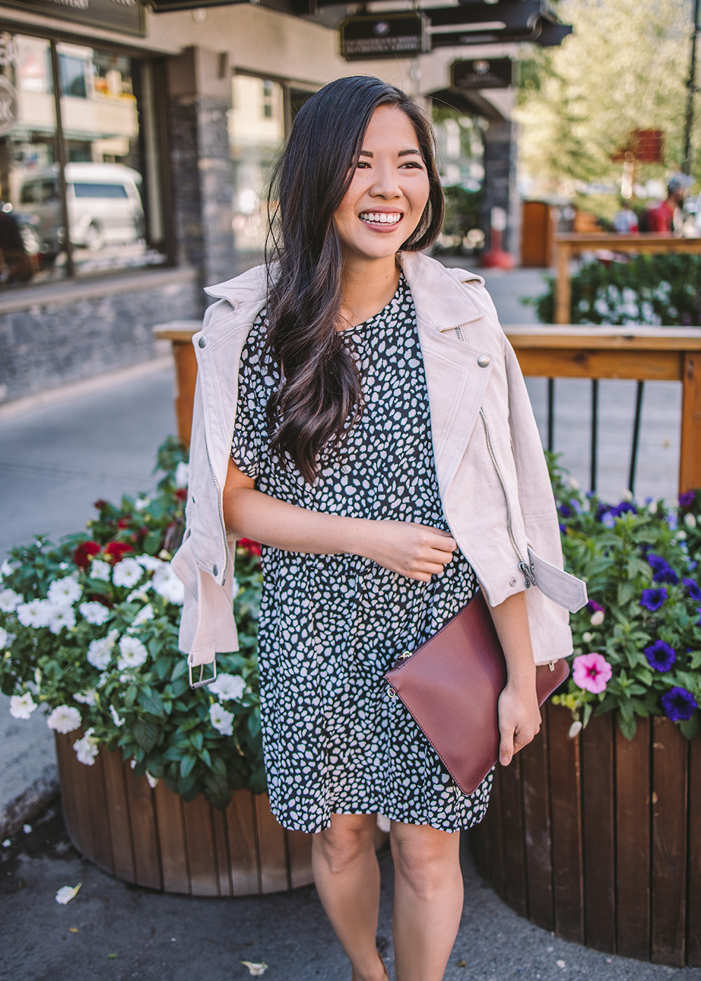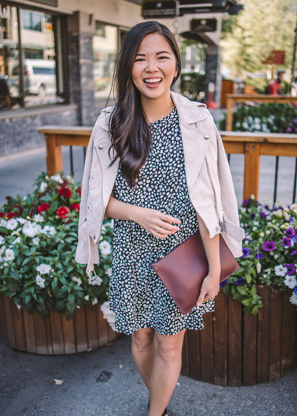 Moto jackets and skinny jeans are a natural fit, but there’s I think there’s something just so effortless cool about it layered over a dress (and believe me, I’m not that cool). I especially love this cream suede moto jacket – the perfect neutral to layer over pretty much anything in your closet!