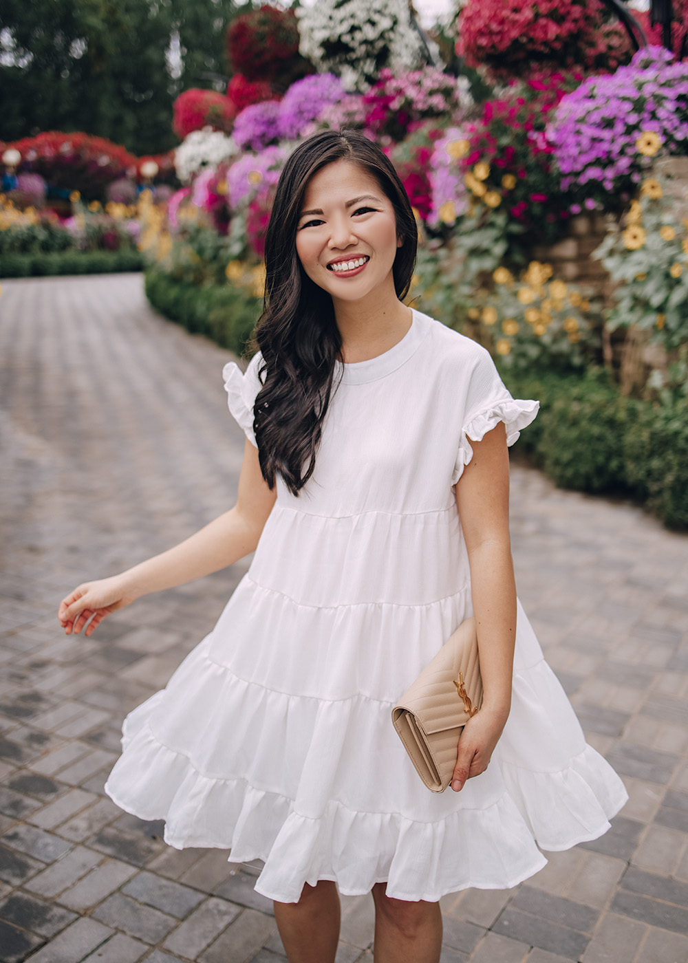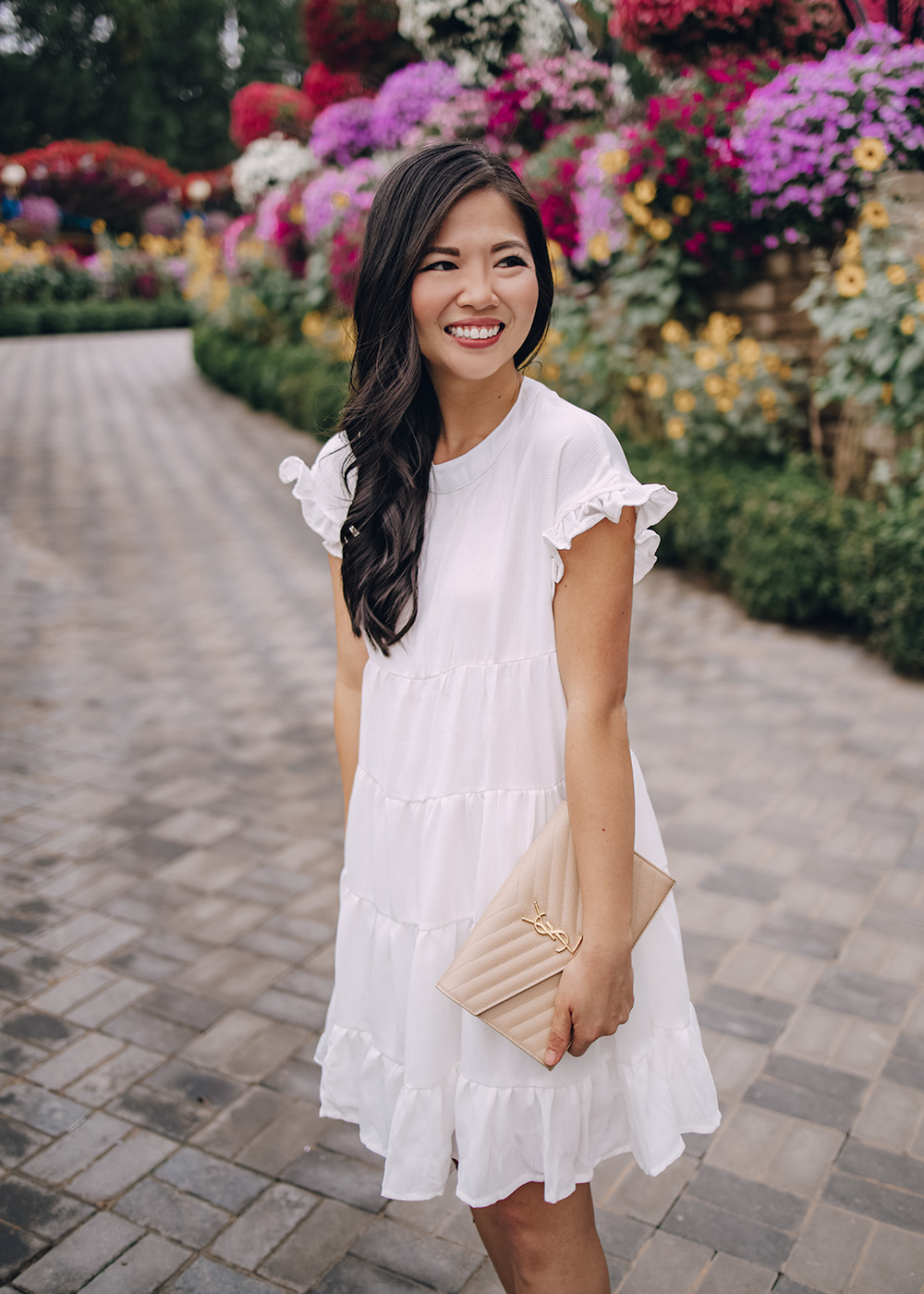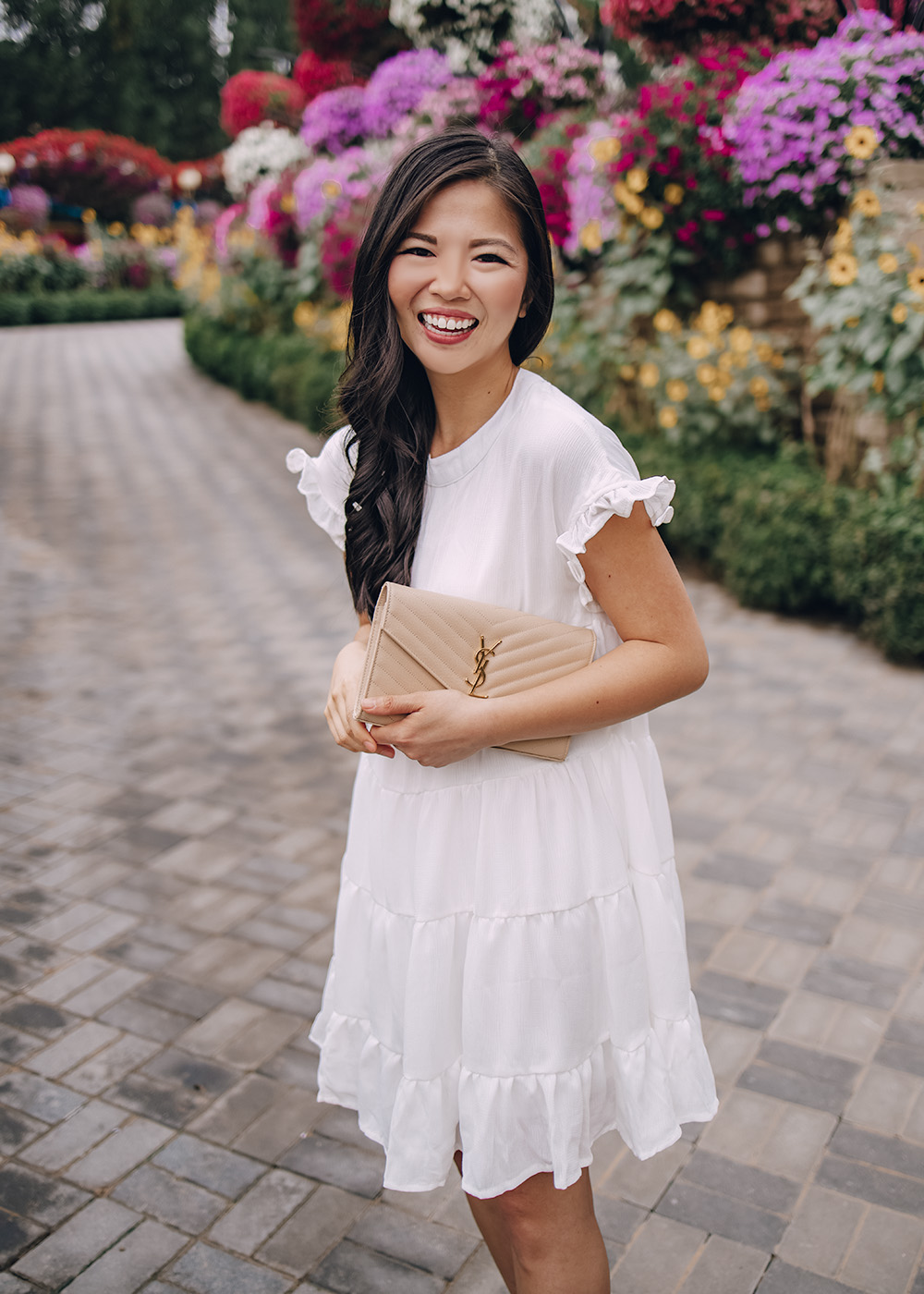 White Swing Dress (only $24 and comes in 29 colors) / Saint Laurent Monogram Wallet on Chain / Leather Mules / Charlotte Tilbury Lipstick in ‘Pillow Talk’