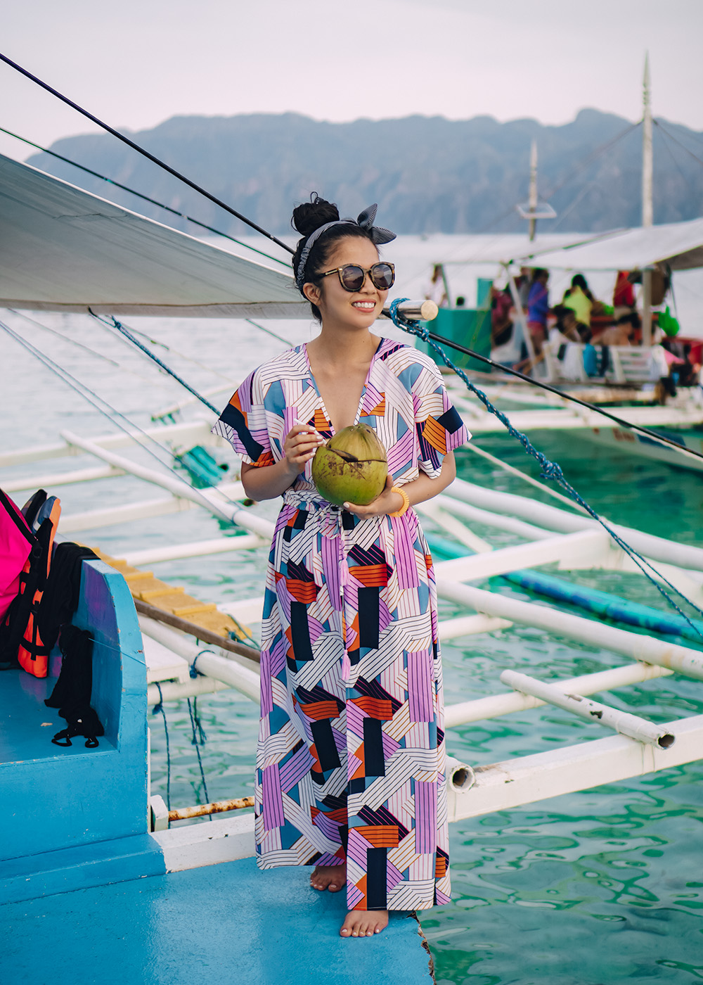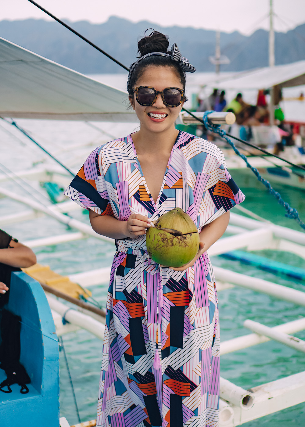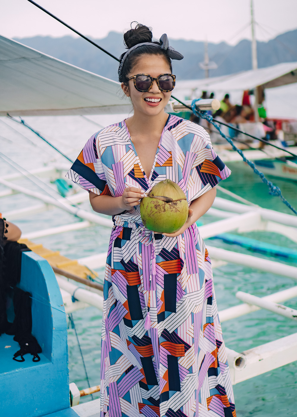 We spent our two full days in Coron on boat tours, where the main attraction of the island is hopping to other islands. I wore this fun, colorful maxi dress as a coverup (it’s pretty lightweight and perfect for the beach/pool). As you know, at 5’2″, it’s pretty difficult to find maxi dresses that don’t require hemming, but this coverup was the perfect length – plus, the print is guaranteed to put you in vacation mode!