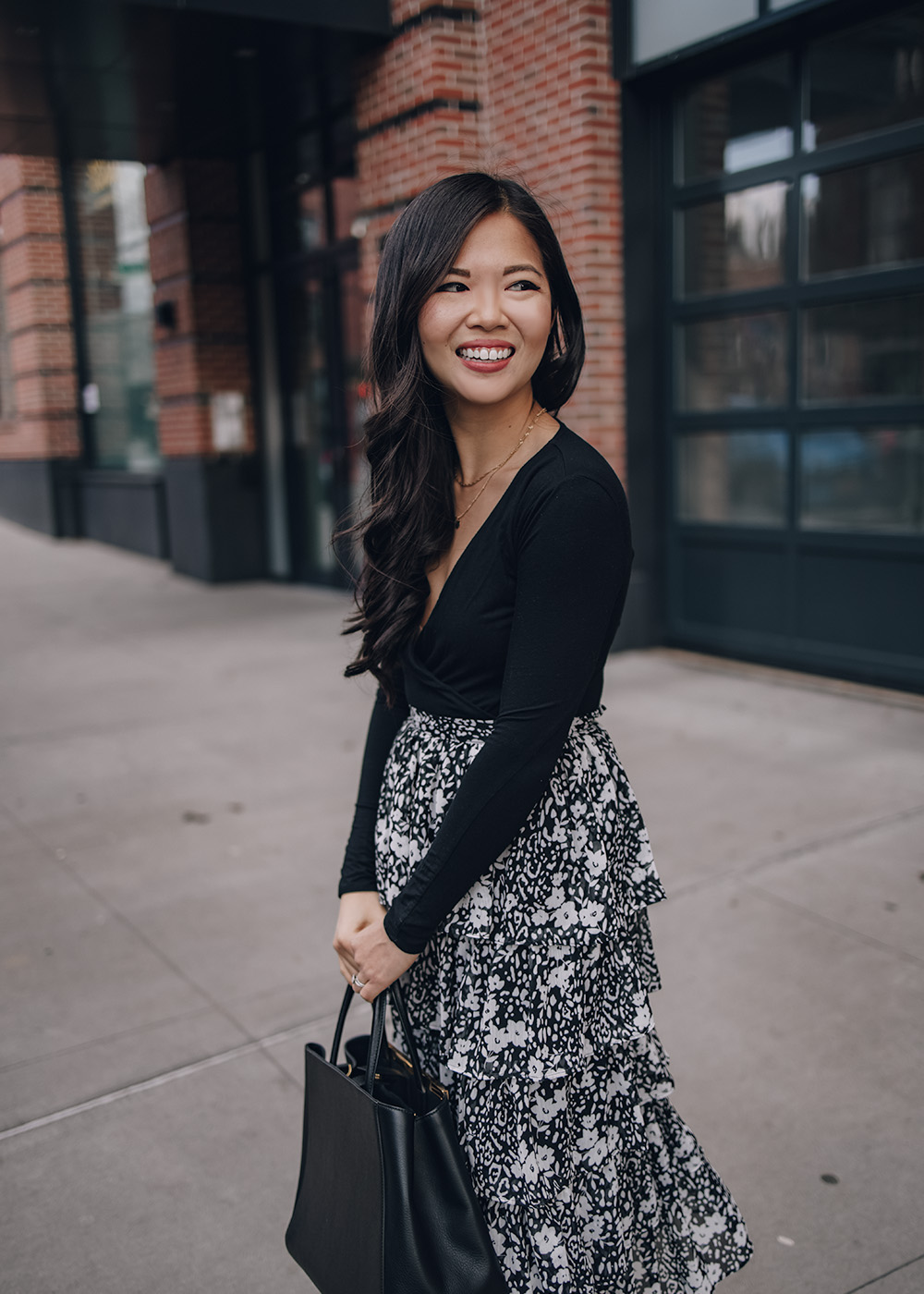 I’m having a bit of a ruffles moment. This floral skirt is so good and also comes in a leopard print, a star print and this gorgeous rosey pink color too. There’s something so undeniably feminine about a whole lot of ruffles, but I also love balancing it with a bit of edge. This super girly skirt feels balanced by the moto jacket and a pair of crisp white sneakers. For a more dressed up look, I love it paired with a bodysuit and leopard pumps. Which one would you wear?
