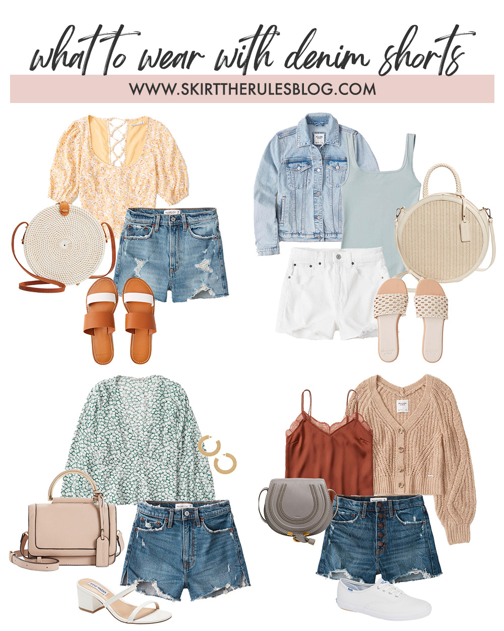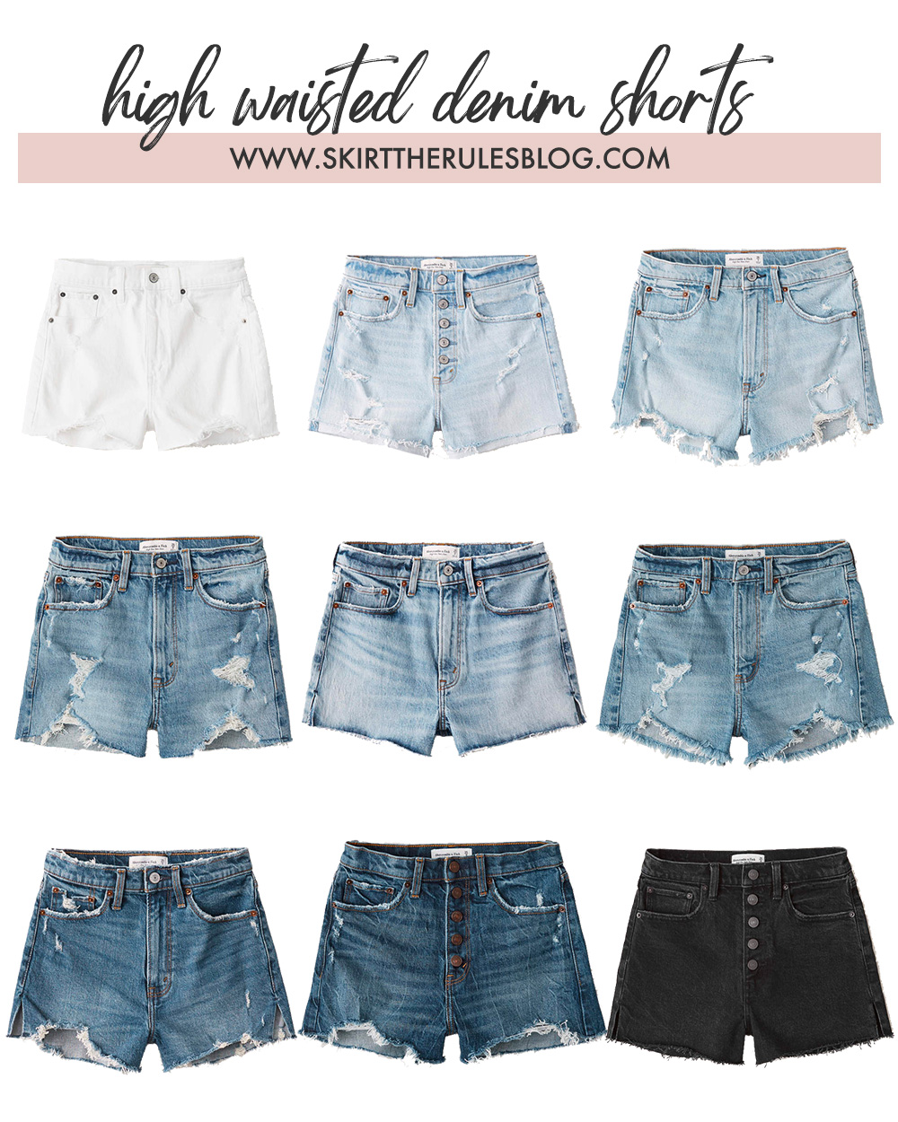 Abercrombie has been my go-to retailer for high waisted skinny jeans, and I equally love them for denim shorts. I recently wore these 4″ mom shorts on our trip to the west coast and they’ve been a best seller ever since I posted about them on Instagram. If you’re looking for a pair, I highly recommend A&F and I put together a few outfit ideas to get your stylish juices flowing. Let me know which outfit is your favorite!