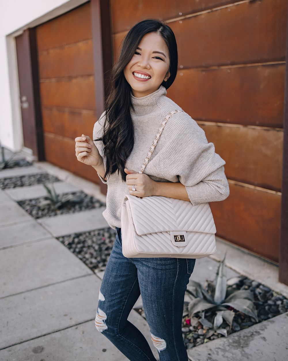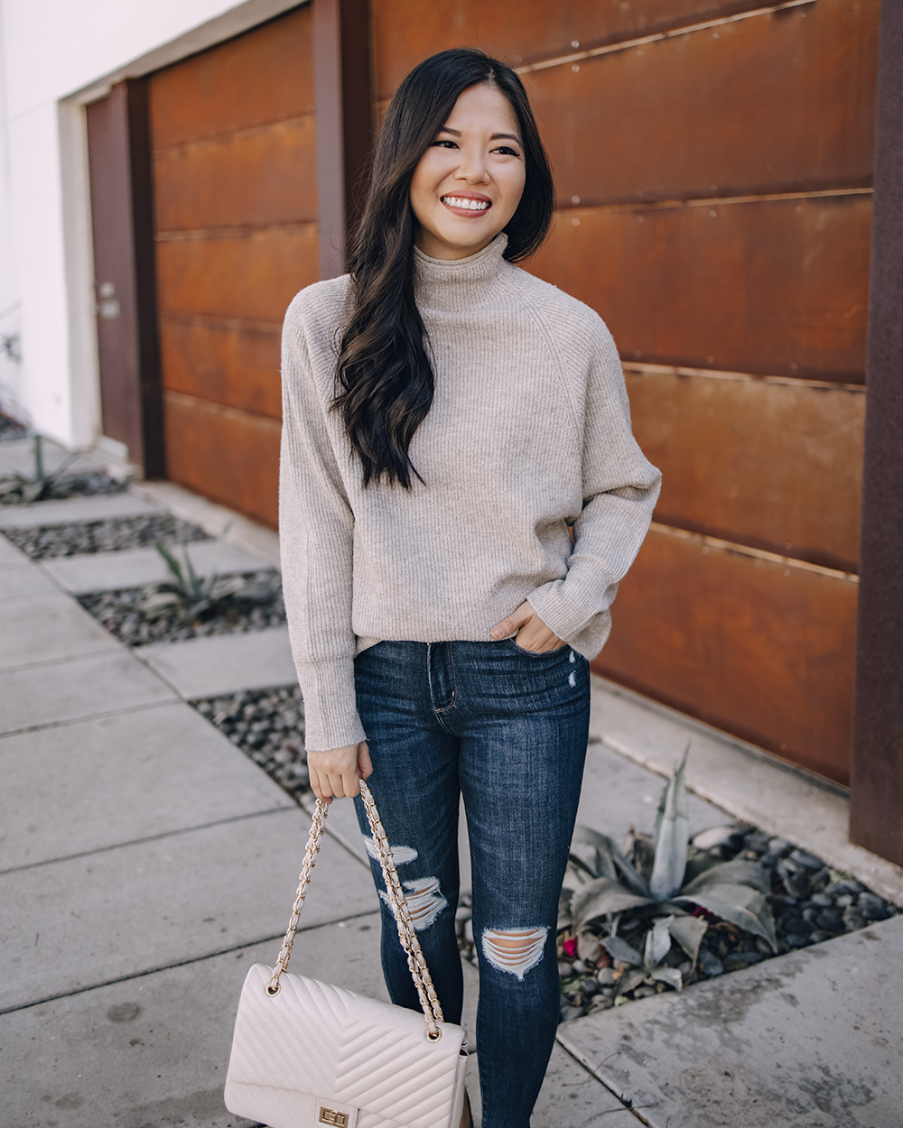 I’ve been stocking up on a lot of neutral turtleneck sweaters this season, and this one might be my favorite yet. I love the subtleness of the taupe and the fact that the turtleneck isn’t too much (sometimes I feel strangled by really chunky or high necklines). It comes in a few colors – this is the ‘beige’ shade online and I also have it in ‘cafe au lait,’ which is more of a tan. Both are beautiful neutrals and I plan on wearing them all winter long.