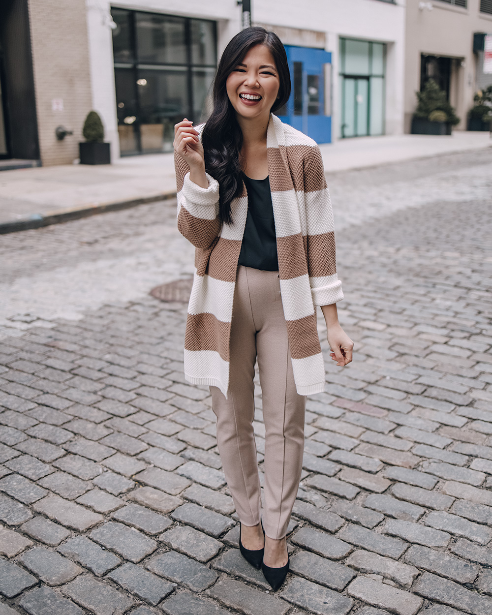 This striped cardigan from Ann Taylor is perfect to wear to work or for work from home!