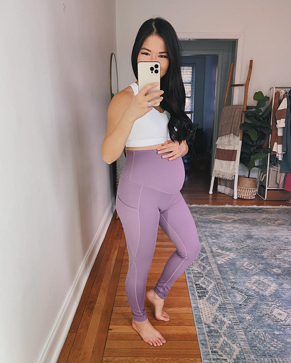 Funny enough, these leggings are actually the only maternity-specific article of clothing of the haul! They’re the only pair I’ve purchased so far, so I don’t have much to compare, but they do remind me of my all-time favorite non-maternity workout leggings because of the high waist and the side pockets.