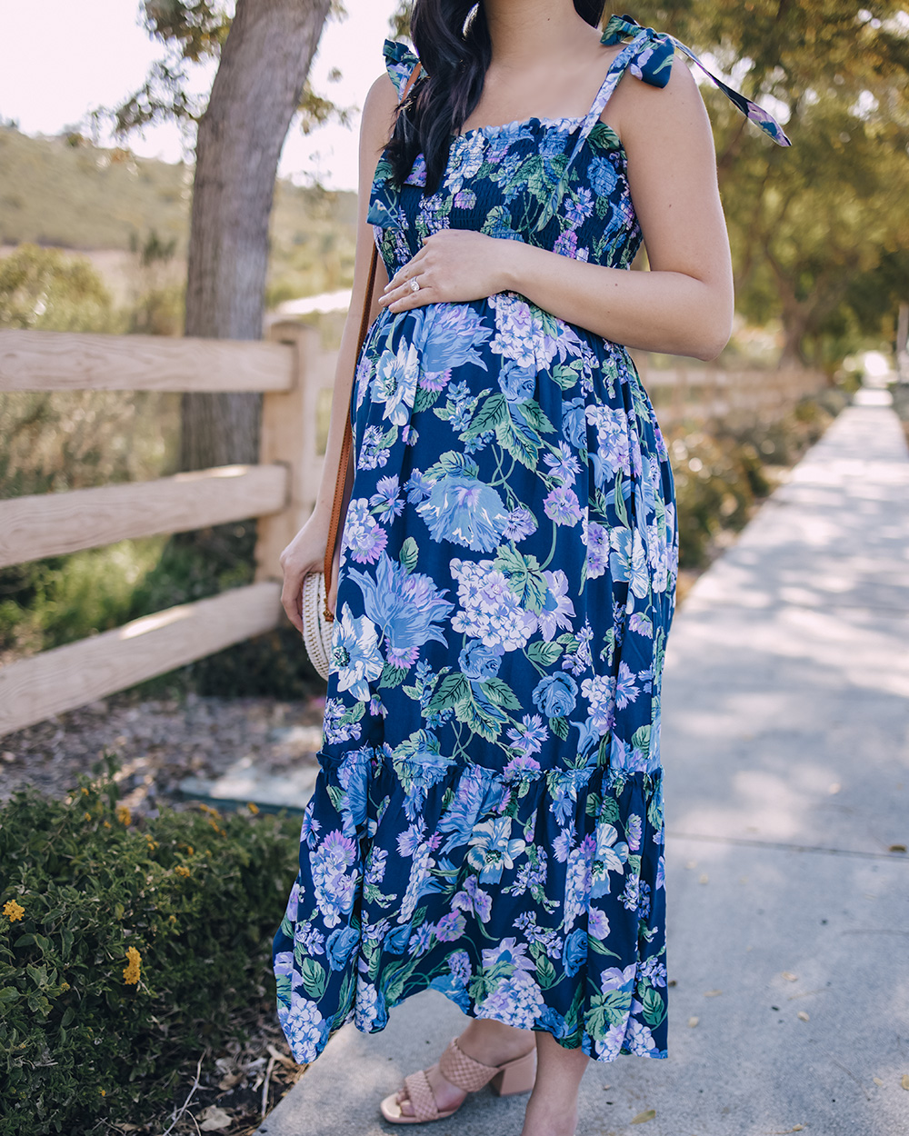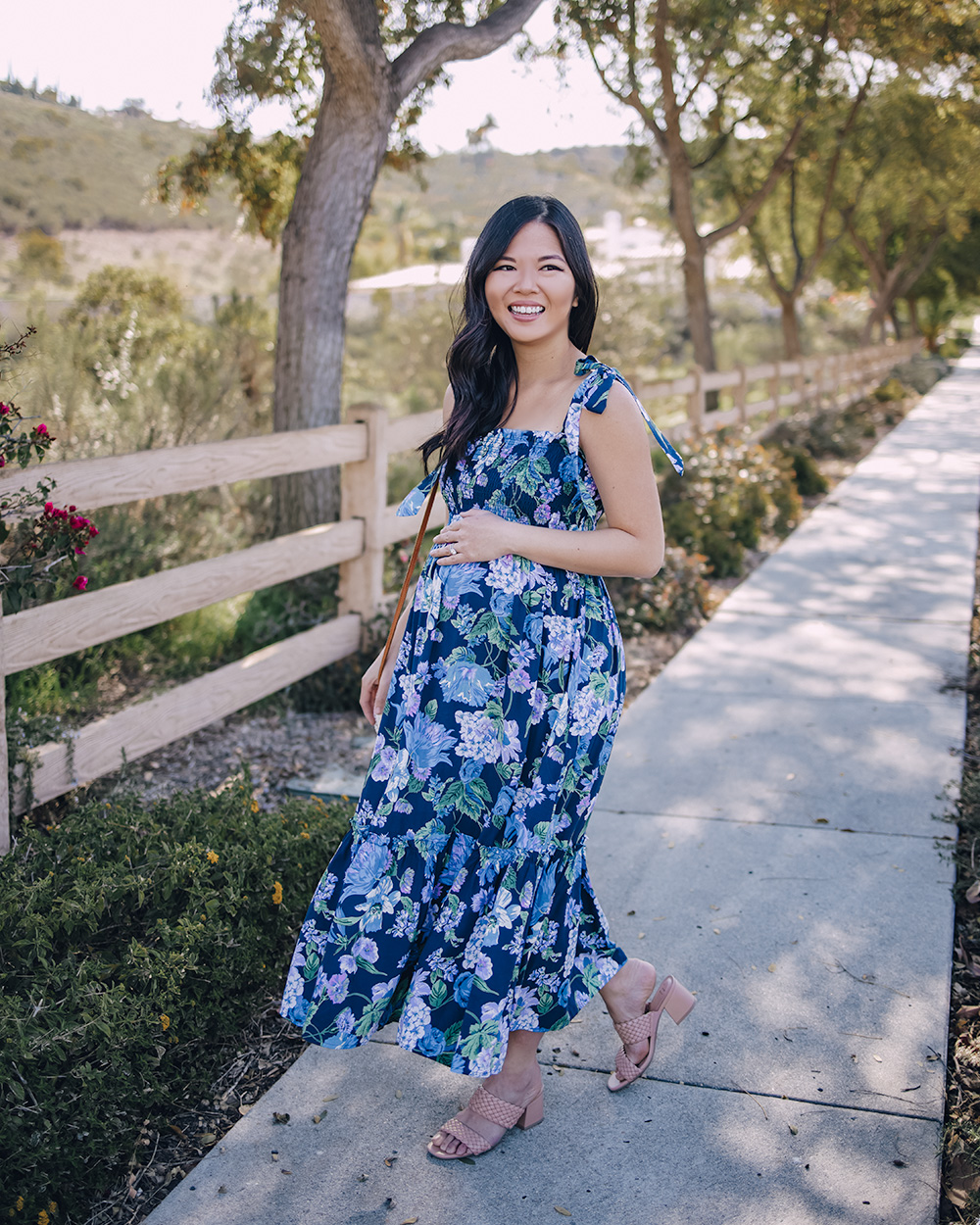 The best part of this hydrangea print dress is that it’s bump-friendly too!