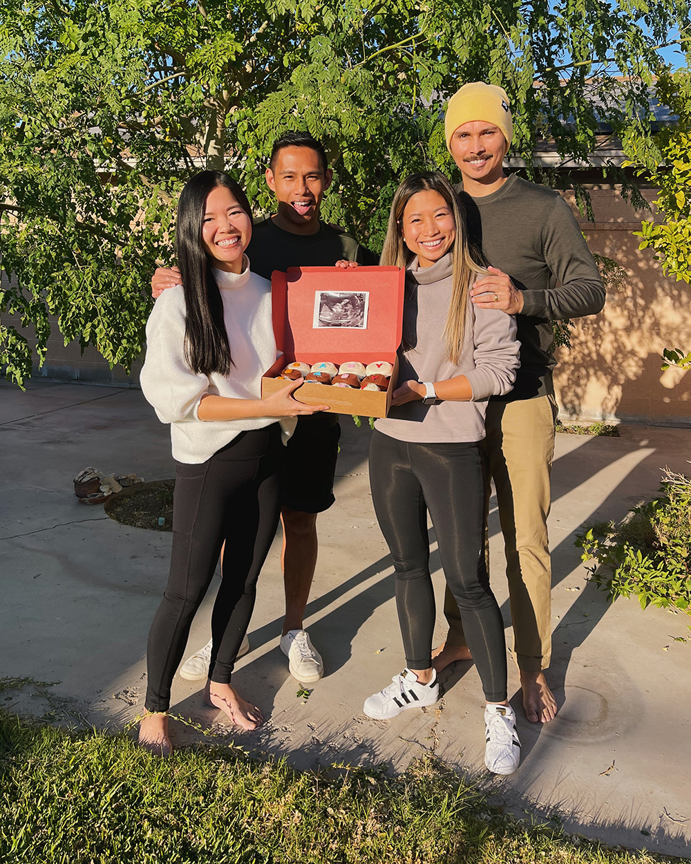 The morning that we took the pregnancy test, we actually flew out to Phoenix to hang out with family for the week. We were staying with James’ younger brother and his wife, who we’re very close with, so as early as it was in our pregnancy, we weren’t worried about sharing the news if it came up.