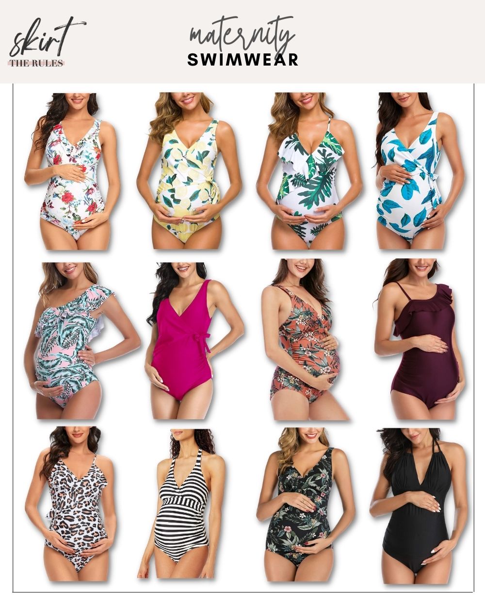 For maternity swimwear, you can go with your normal size – these swimsuits are designed with extra fabric and cut in a way that hugs your bump (this fuchsia one piece and this dark navy floral swimsuit were my favorites).