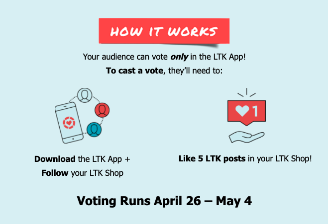 And that’s it! The influencer with the most growth and likes between April 26 and May 4 will win their category, as well as featured placements in LTK emails and posts.