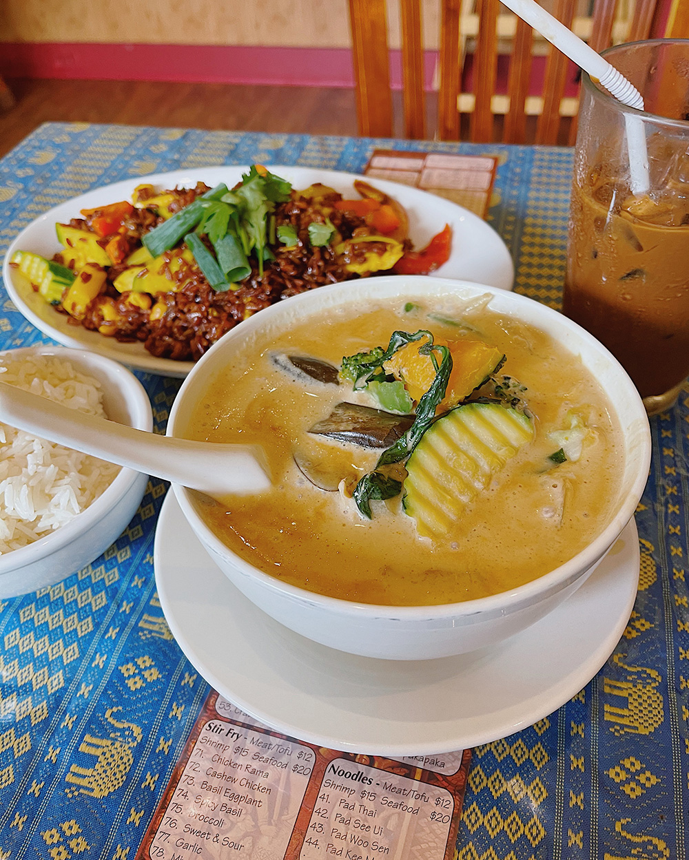 Naung Mai Thai Kitchen (Hilo): This was actually our first meal on the Big Island – after a very long travel day from the mainland, I was craving Thai food and found this mom and pop shop with legit flavors. Their red curry and Thai coffee were both super flavorful and delicious!