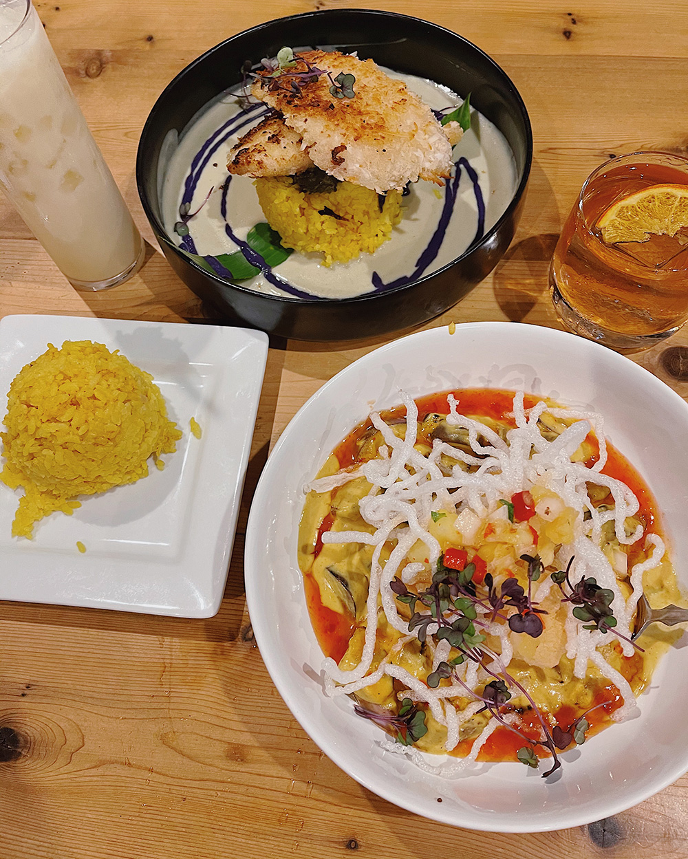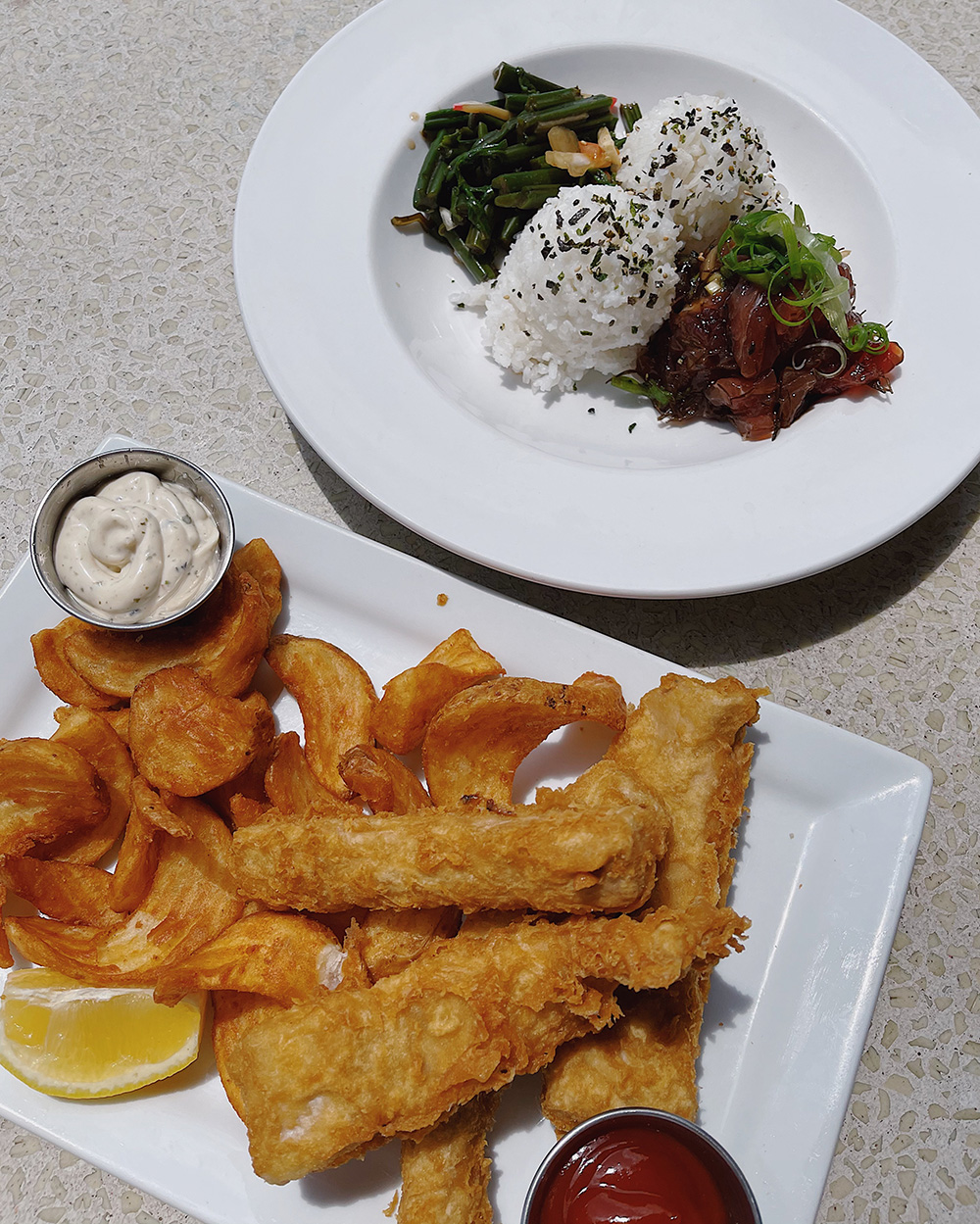 Kuleana Rum Works (Waikoloa): One of the few decent restaurants near our resort – we actually at there twice (takeout on our first night in town, and then dine-in for our last night). This restaurant gave me easy, fun date night vibes. I had the vegan coconut curry and James had the local catch. Virgin piña colada was good, but I bet it’s even better with the rum they distilled themselves!