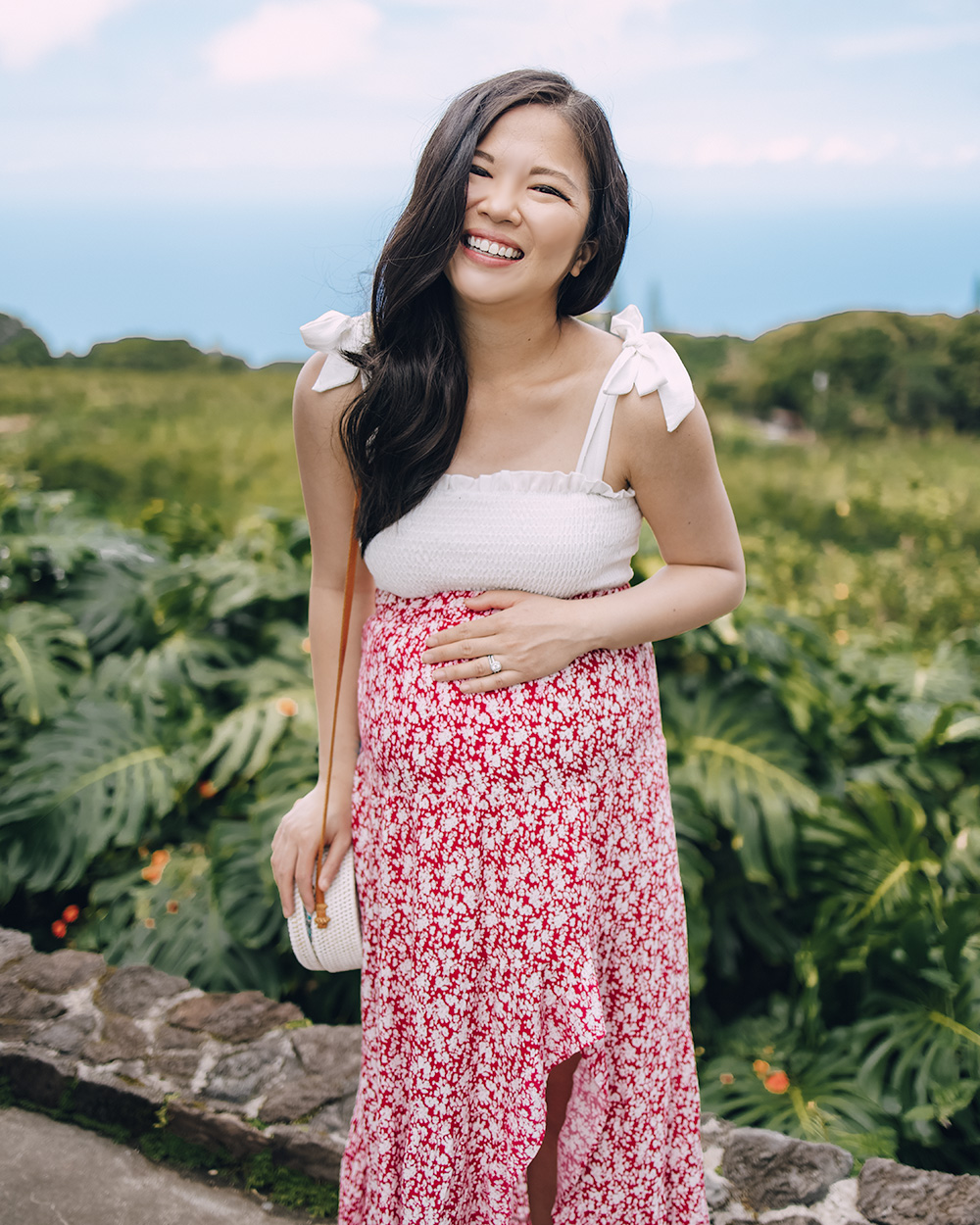 We shot these photos during our babymoon on the Big Island, right after taking a tour of the Heavenly Hawaiian Coffee Farm in Kona. You can read about our favorite foodie spots on the Big Island here – because nothing makes mama happier than an easy, summer outfit and a cup of cold brew with a view!
