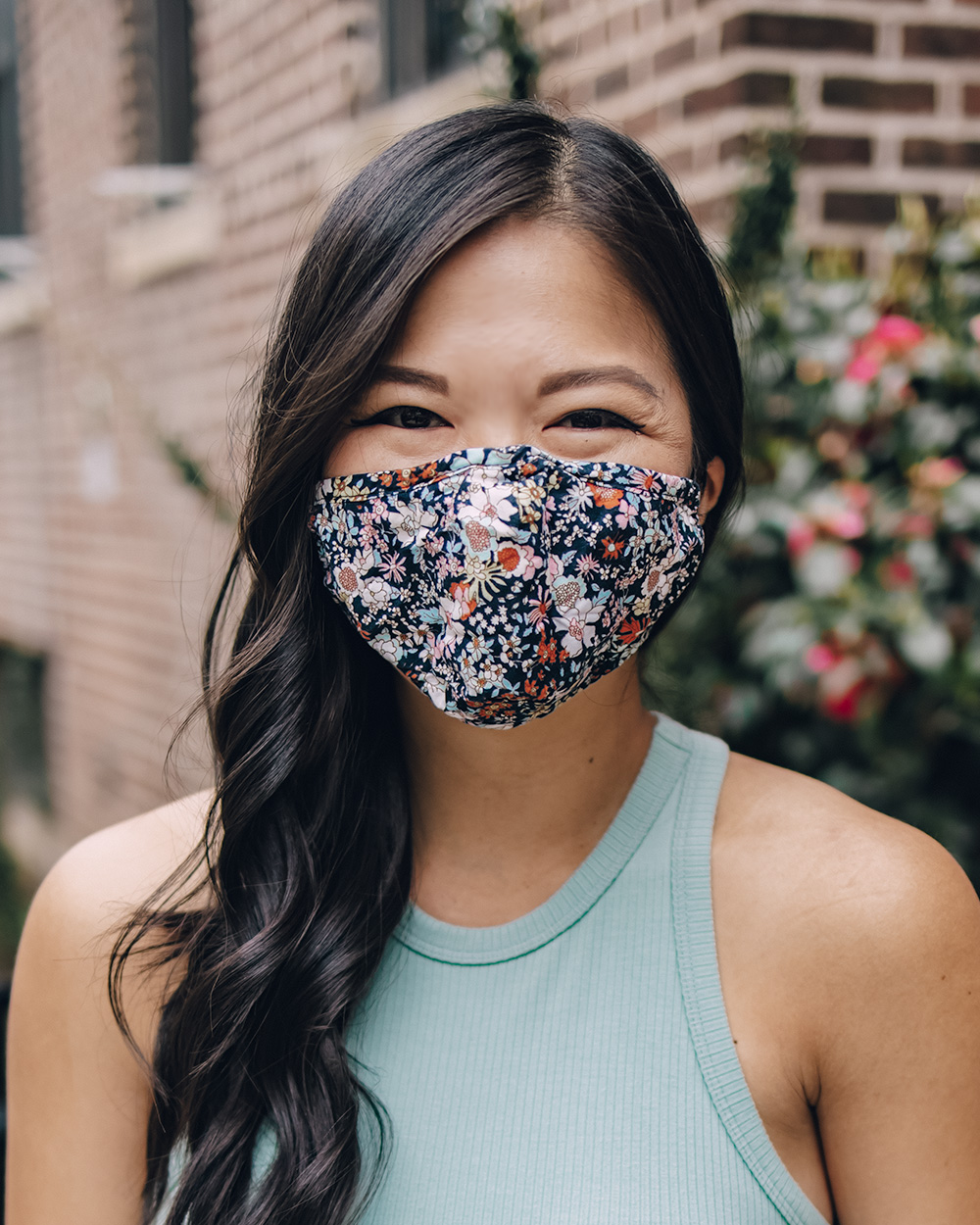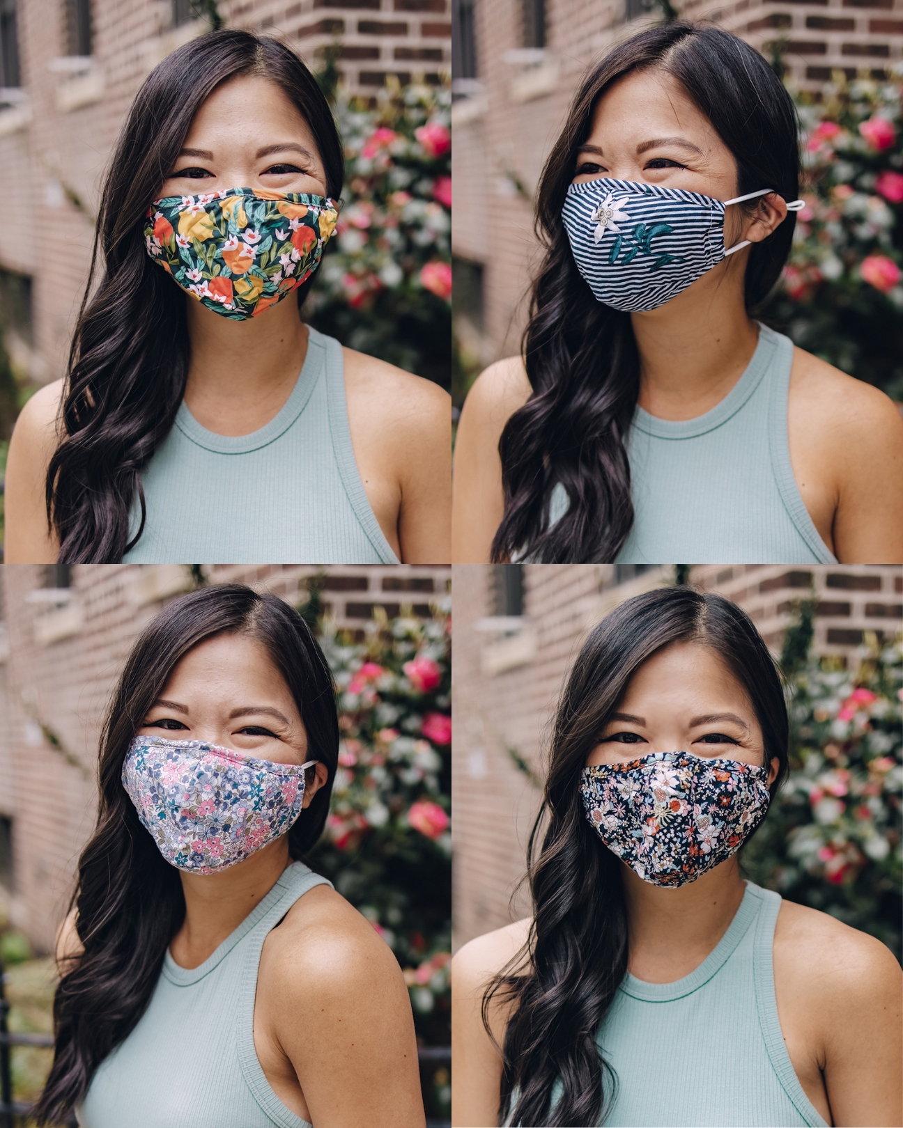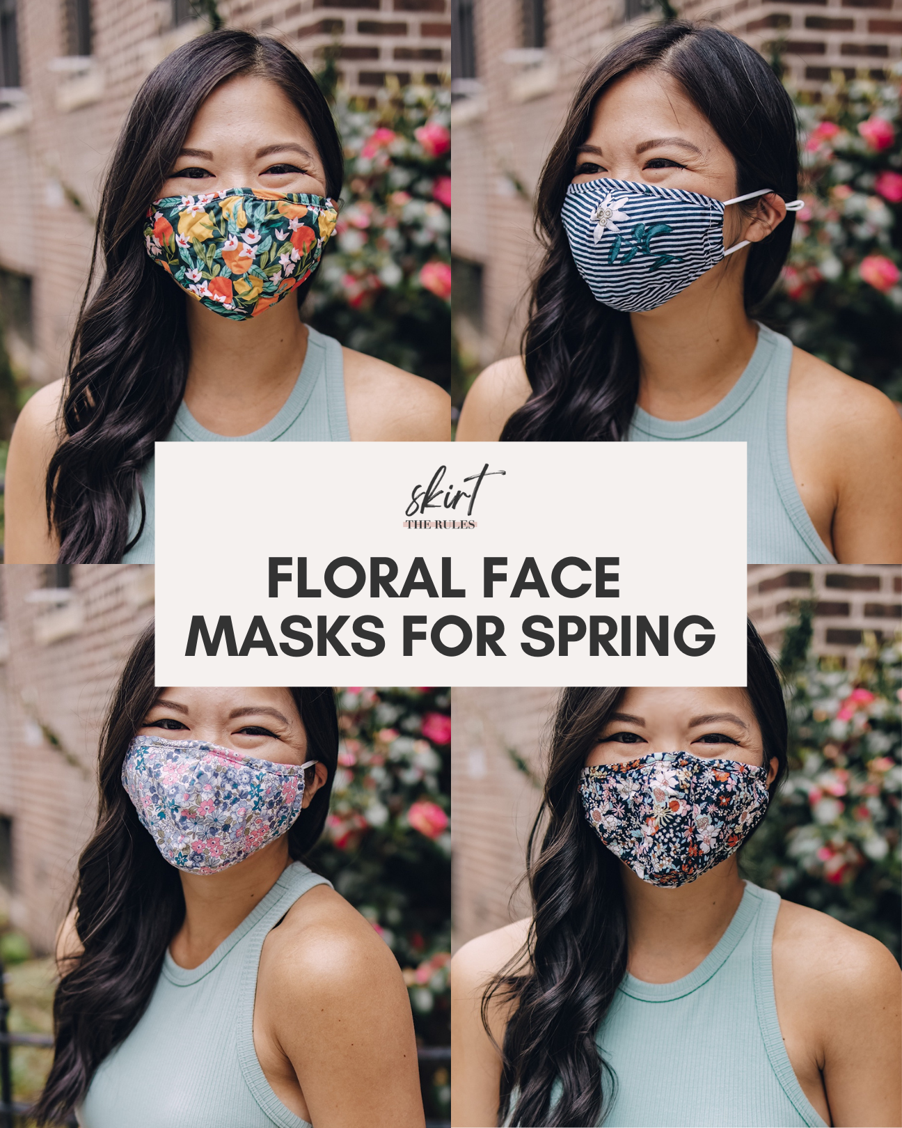 So, with spring in full swing, I wanted to share four of my favorite floral masks from Etsy. I prefer face masks with a nose wire, ear loops, a pocket filter and a cute print, which makes Etsy sellers my best bet. The four floral print masks that I’m wearing here are from two different shops that I love – and both are super affordable and ship quickly!