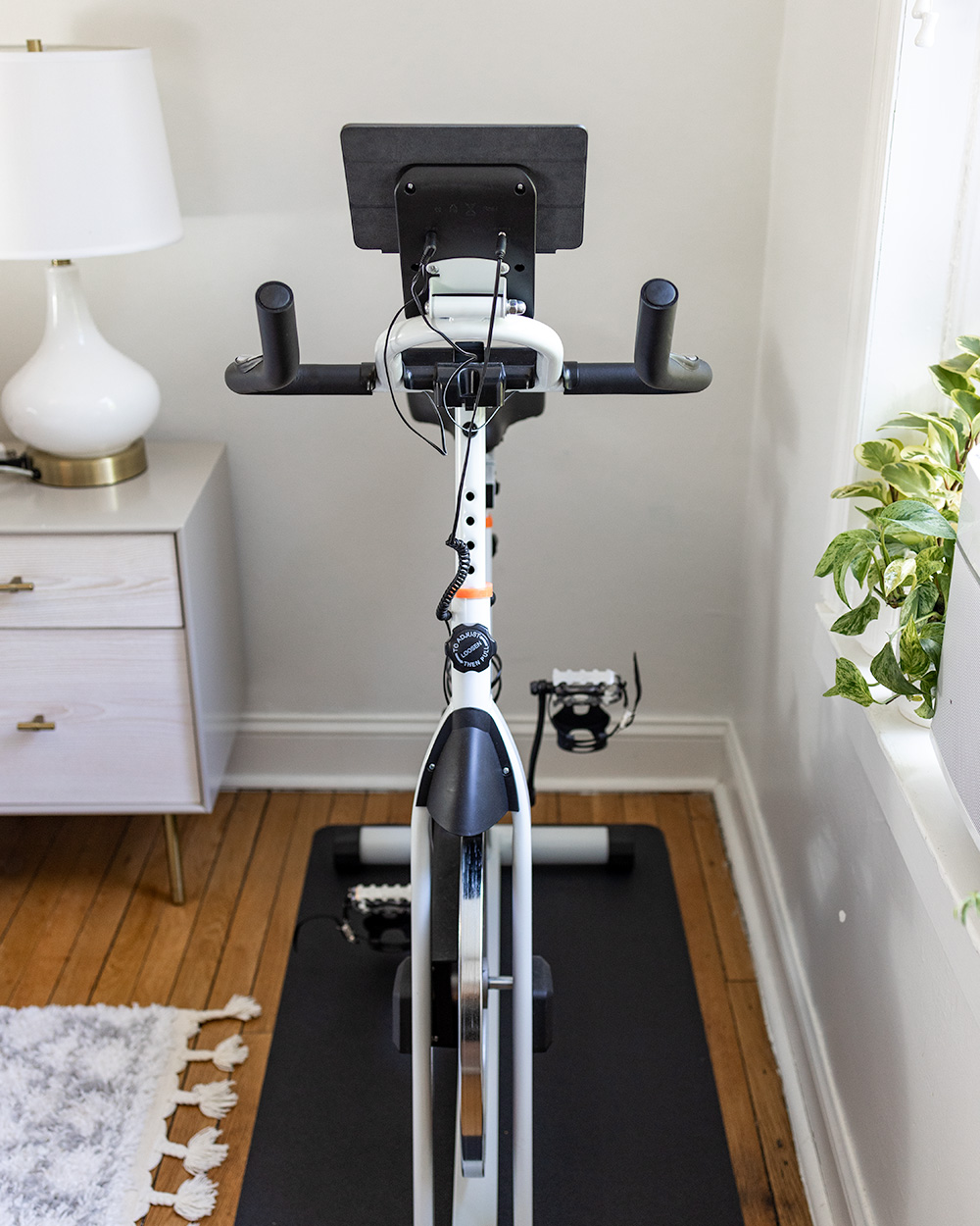 • It’s also one of the few white stationary bikes that I’ve seen on Amazon – if not the only one! I know that’s a pretty superficial reason, but I wanted workout equipment that would blend in versus making our bedroom look like a gym!