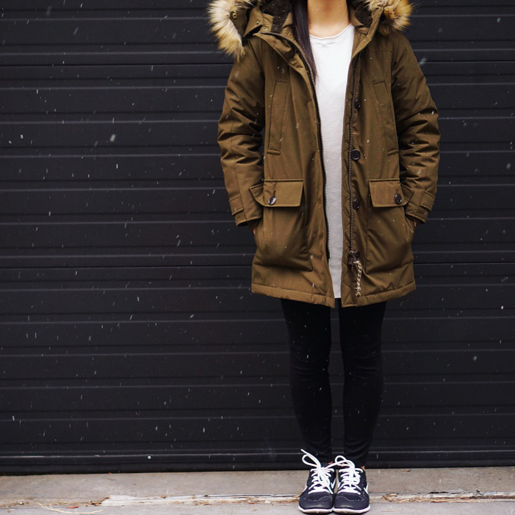 J.Crew ‘Nordic’ parka (on sale for $255!) / Black ponte leggings / Nike ‘Free’ sneakers