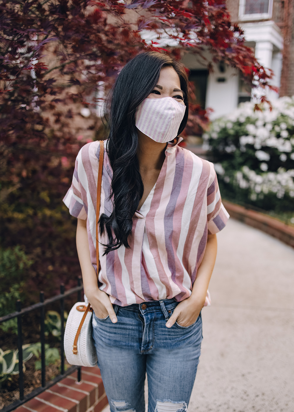 Pink Striped Shirt and Ripped Skinny Jeans