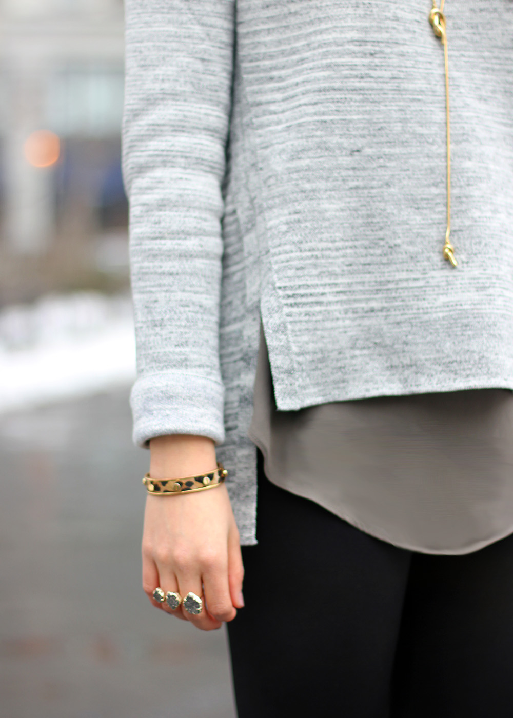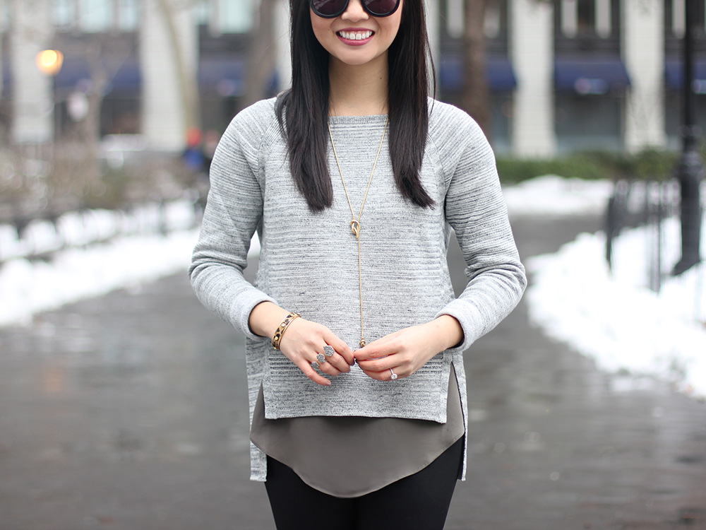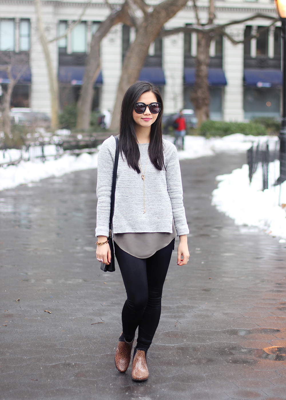 As we impatiently wait out this transition, you can probably find me kicking through mountains of dirty snow in a pair of leopard rain booties. I’ve already traded in my thick knits for lighter layers, like this easy sweater and tunic combo and once it hits 50°F, I can almost guarantee that I’ll be bare legged. Too soon? Or not soon enough? Spring, where you at?!